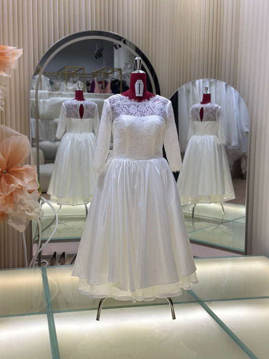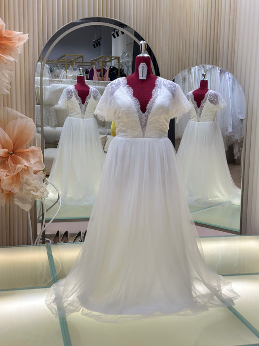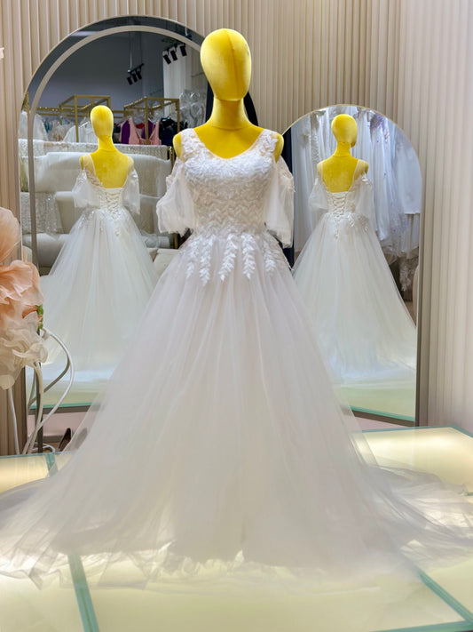 BG-WED-AME-10133 WEDDING GOWN LUX FABRIC HALF LACE WITH BEADED SIZE S BUST 80 WAIST 67