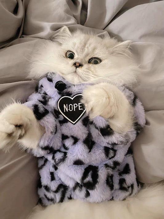 Purple Leopard Plush Winter Warm Pet Sweater for Cats Dogs
