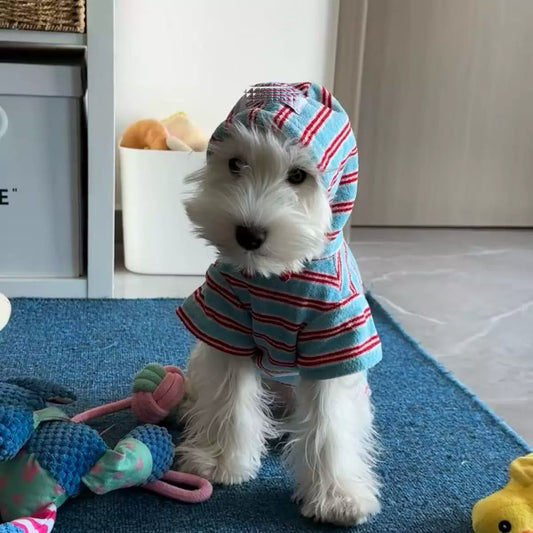 Blue Stripe Hooded Dog Sweatshirt for Small Breeds