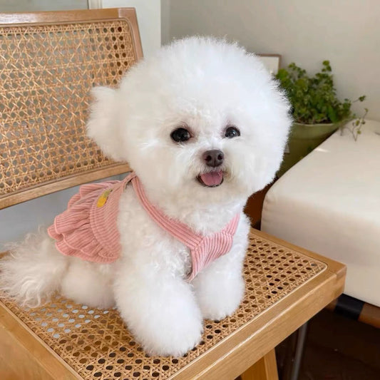 Cute Corduroy Rabbit Strawberry Dress Skirt for Small Pets
