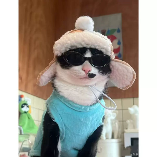 Velvet Airplane Hat for Small Dogs with Lamb Ears
