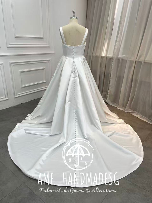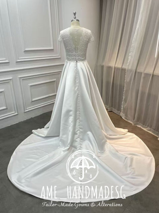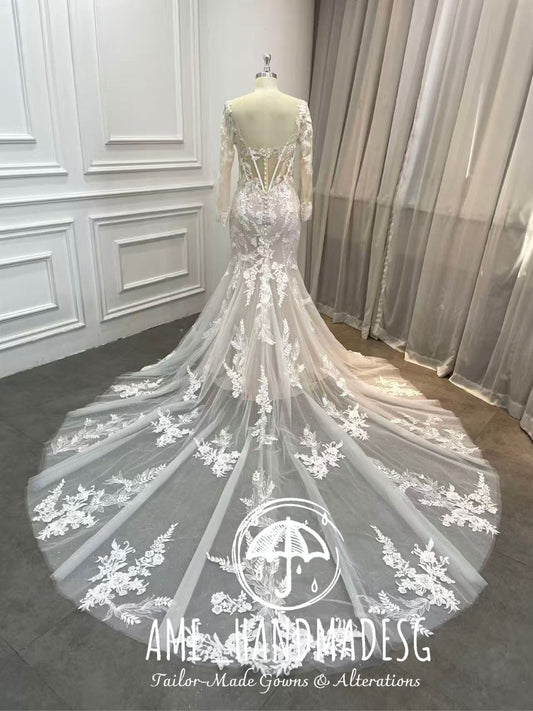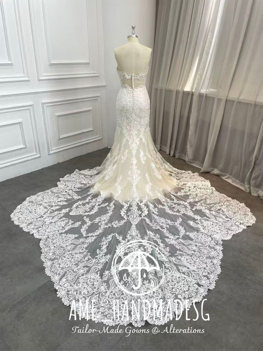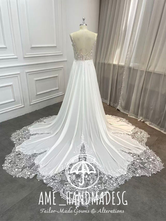 Ethereal Floral Lace A-Line Wedding Gown with Chapel Train