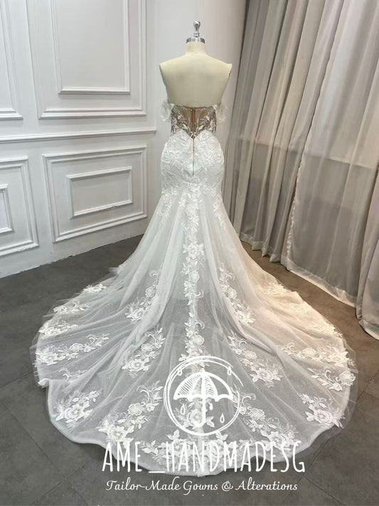 Radiant Blossom Off-Shoulder Lace Mermaid Gown