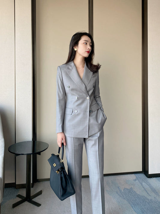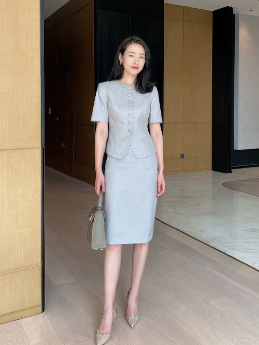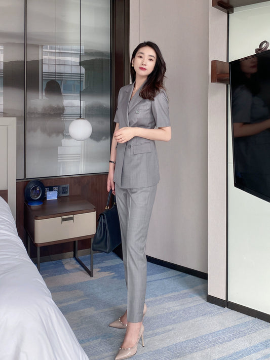 High-End Light Grey Short‑Sleeve Summer Suit Set for Office