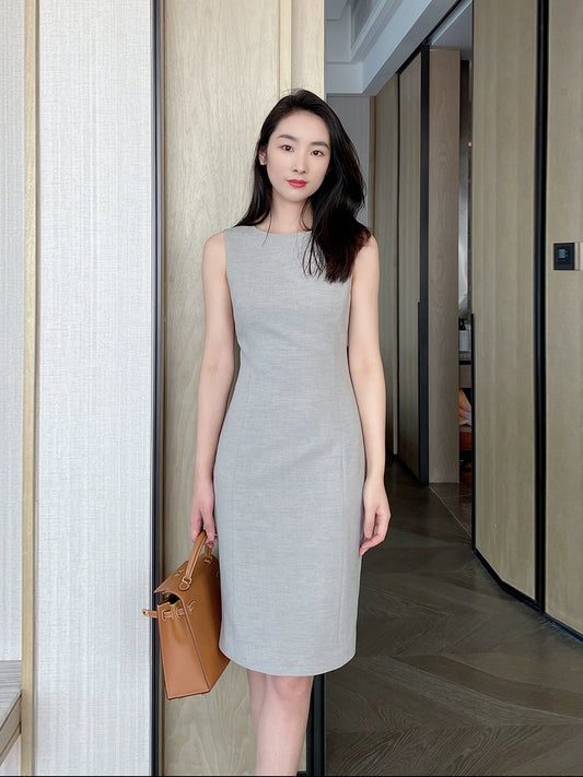 Elegant Summer White Tea Grey Sleeveless Dress Suit Set