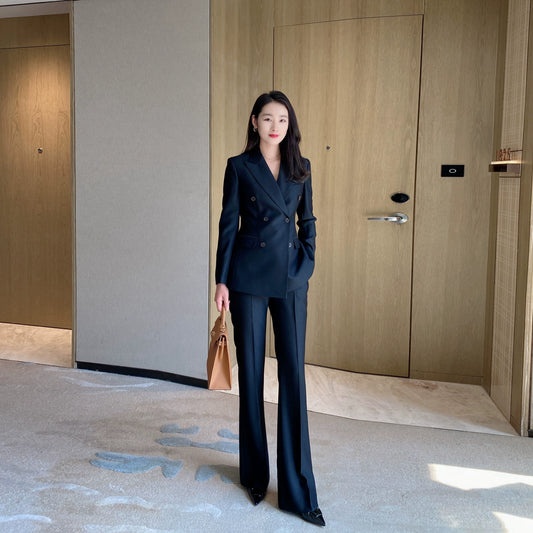 Autumn High-End Black Polyester Suit with Slim Fit Flared Trousers