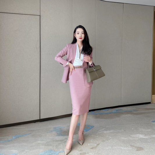 Iceberry Pink Autumn Classic Suit with Fitted Jacket Skirt