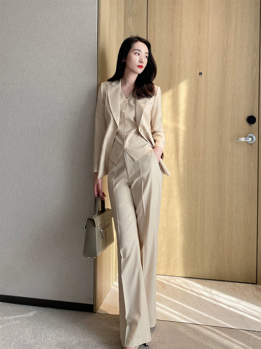 Apricot Woolen Women's Suit Set – Vest & Trousers, Slim Straight Fit