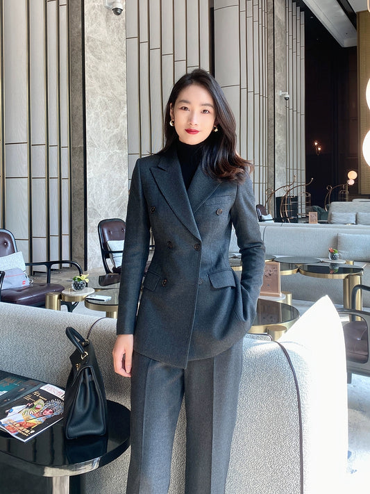 Women's Dark Gray Woolen Suit Jacket and Trousers