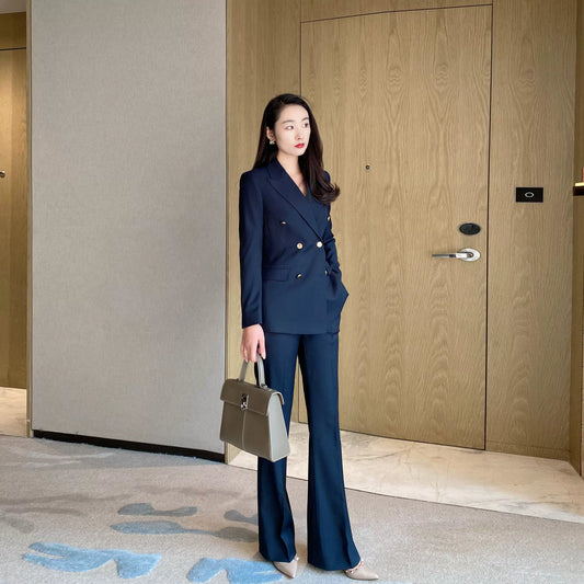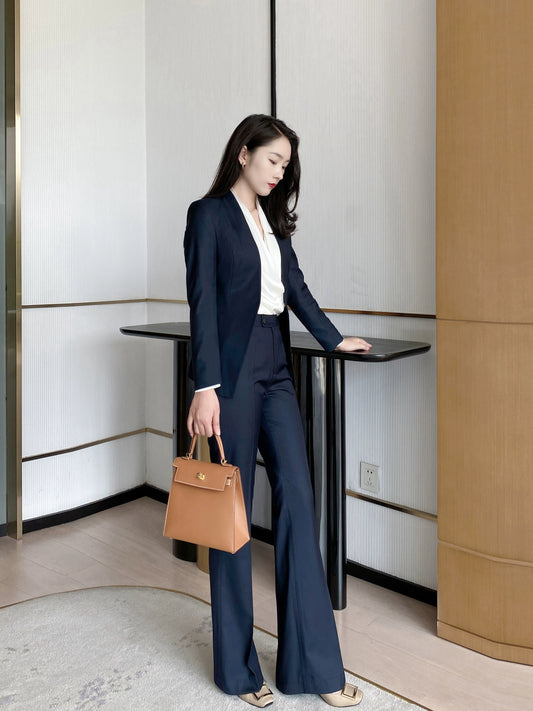 Elegant Navy Blue Slim-Fit Suit with Flared Trousers