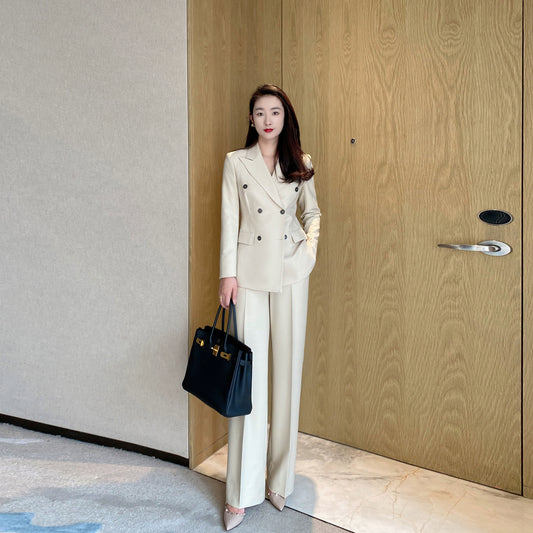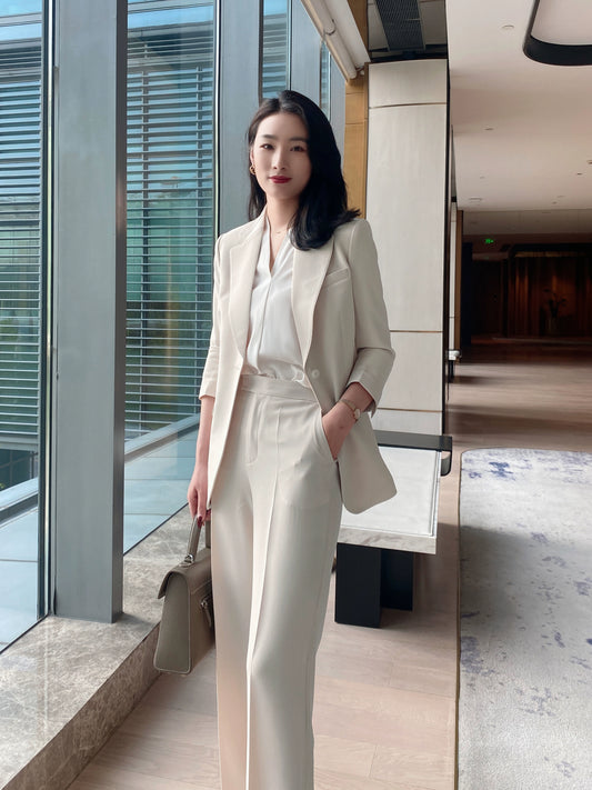 Off-White Classic Autumn Suit Set for Office – Loose Straight Fit