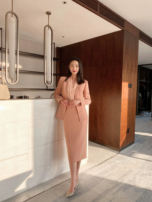 Elegant Spring Autumn Fuchsia Slim-Fit Jacket & Hip-Accented Skirt Set