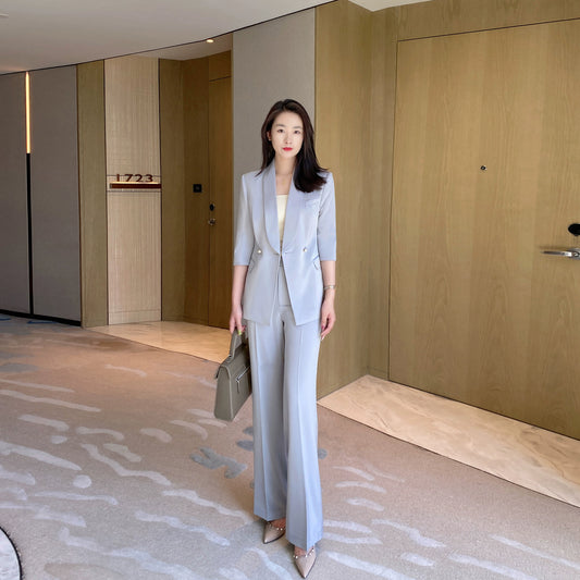 Silver Gray Summer Women's Suit Set with Loose Straight Fit