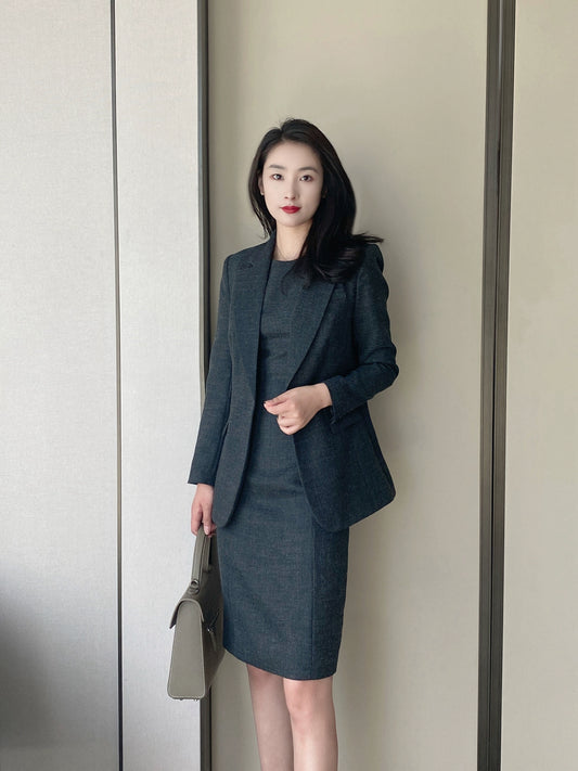Dark Gray Demi-Season Fitted Dress, Skirt & Jacket Set