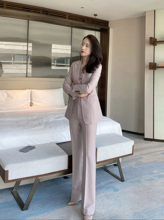 Elegant Pale Pinkish Gray Wool 3-Piece Women's Suit Set
