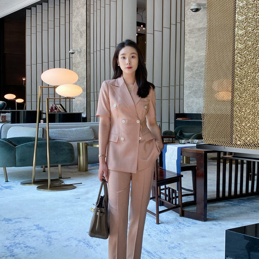 Fuchsia Summer Light Slim Suit Set with Short Sleeve