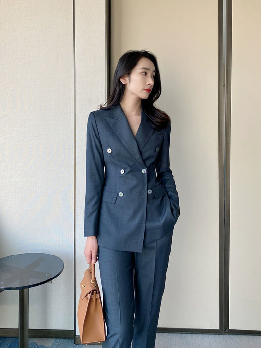 Elegant Dark Gray Wool Suit Set for Autumn Professionals