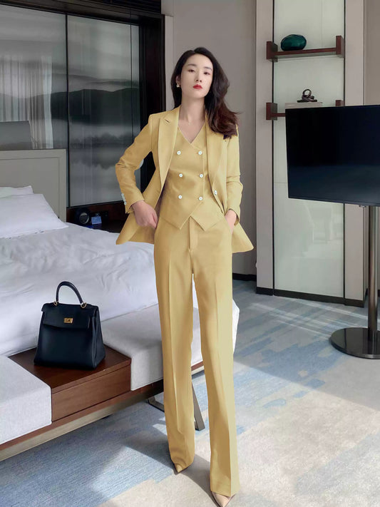 Bright Yellow 3‑Piece Classic Suit Set – Jacket, Vest & Trousers