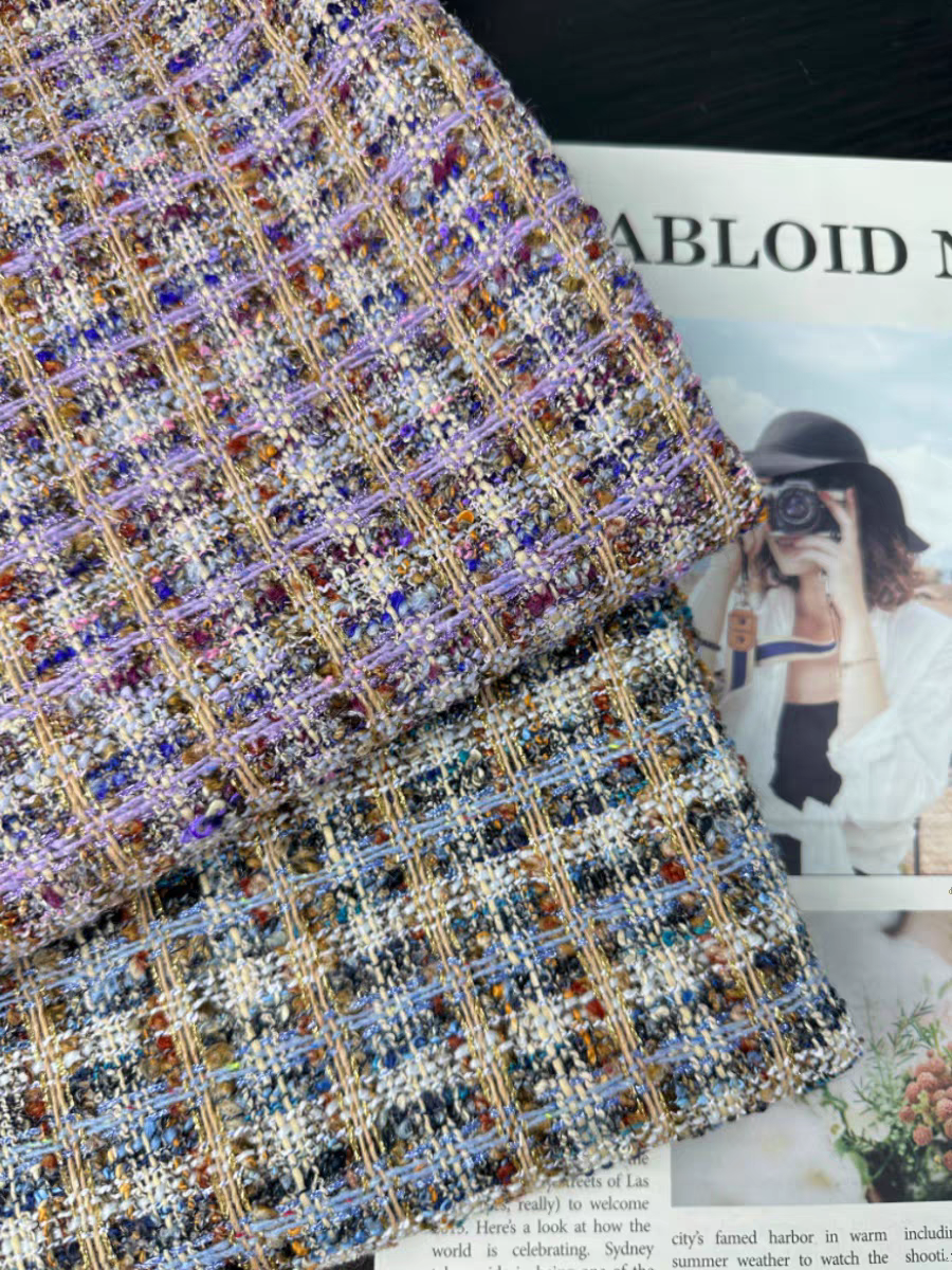 Autumn and winter new style bright silk high-end wool purple socialite small fragrant style tweed jacket dress two-piece vest | Amehandmadesg