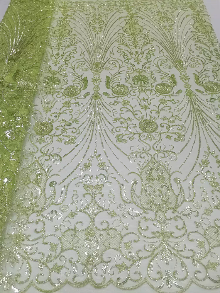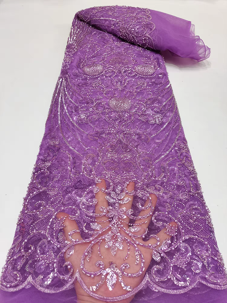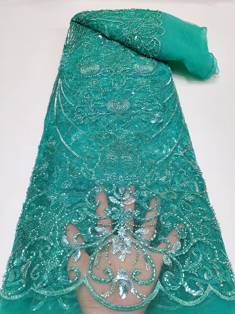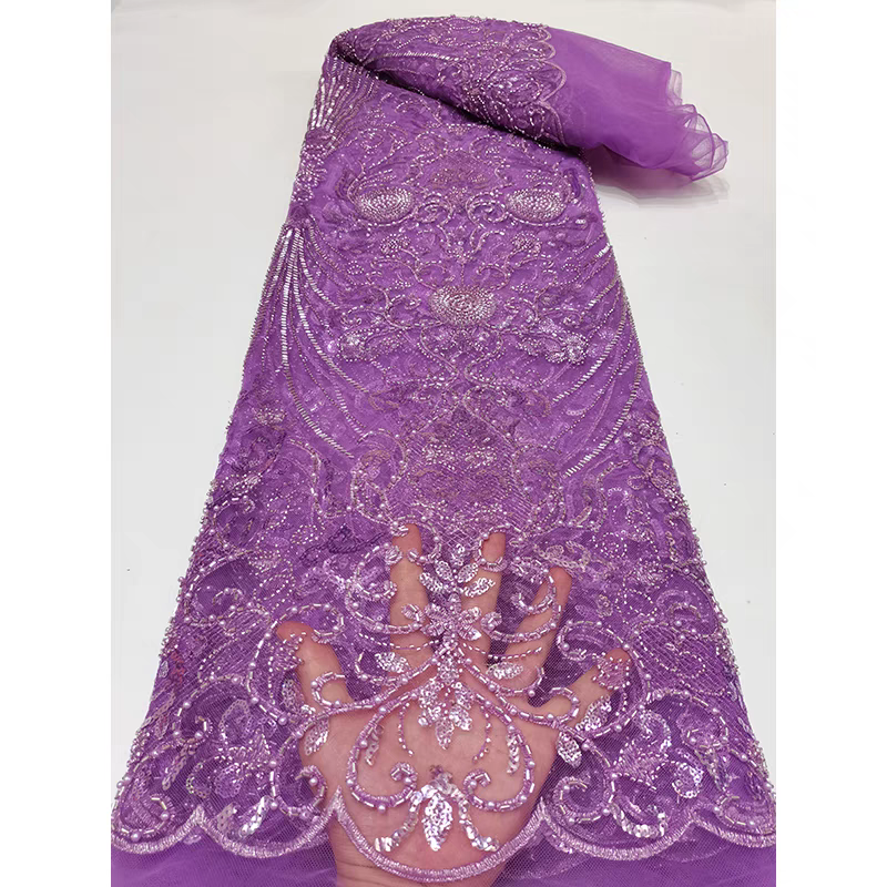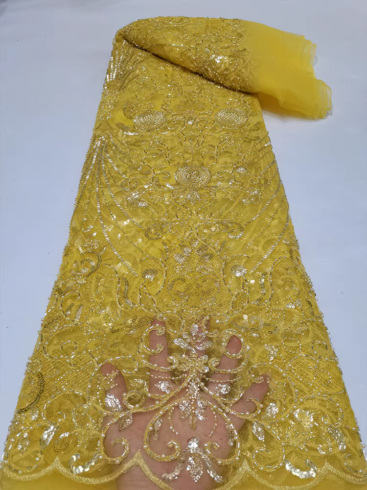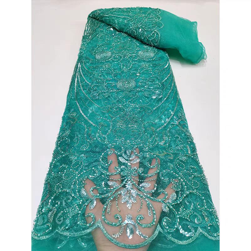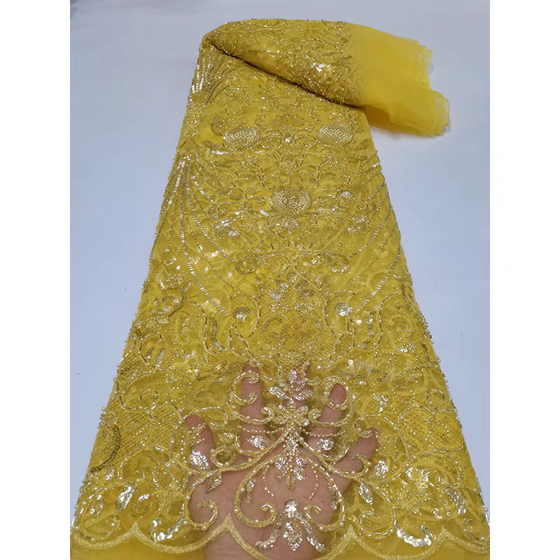 Beaded Tube Embroidery Mesh Fabric Lace Pearl Flower Sequin Embroidery Fabric Dress Wedding Dress Clothing Five yards