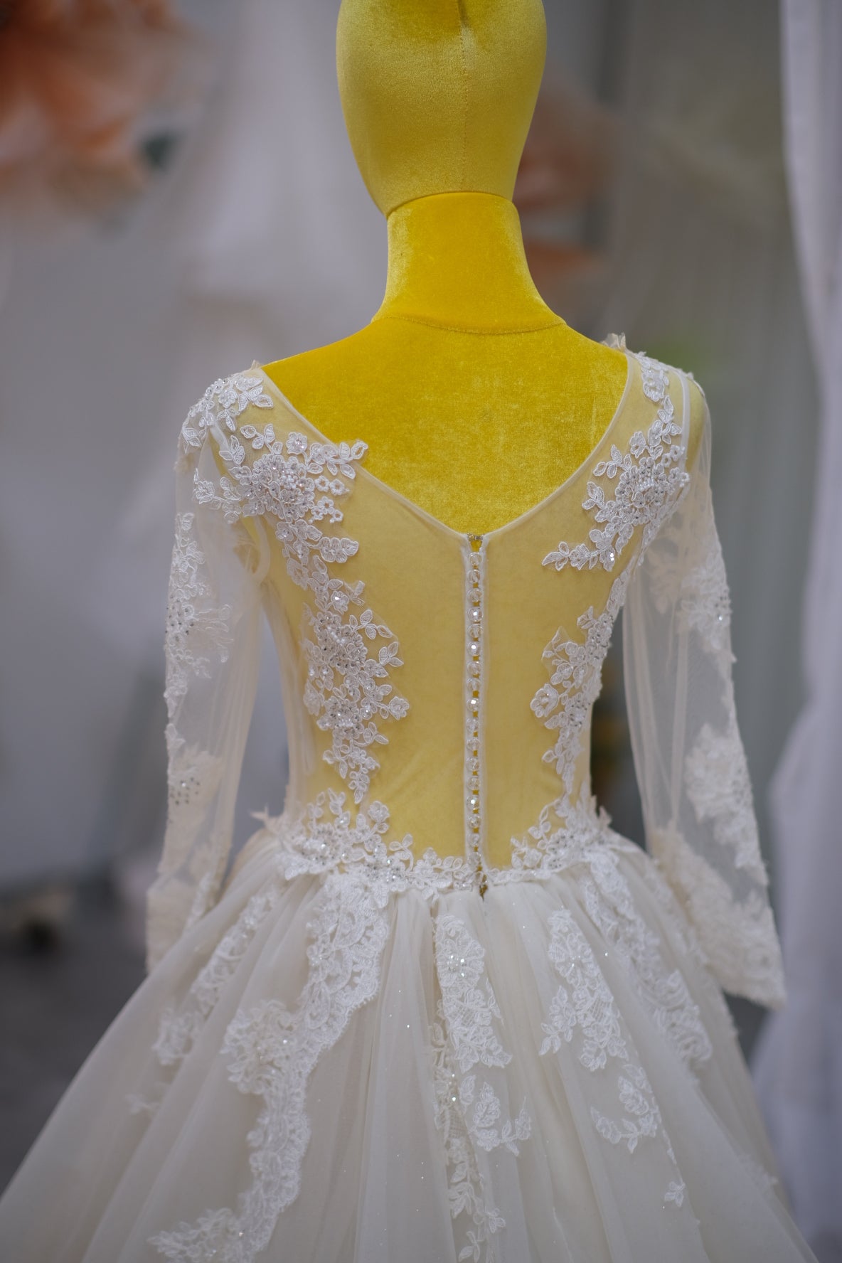 BG-WED-AME-10073 WEDDING GOWN PREMIUM FABRIC FULL LACE WITH BEADED SIZE S BUST 80-84 WAIST 64-68 HIPS 94
