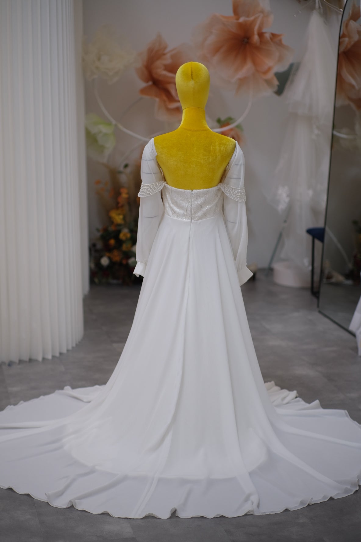 BG-WED-AME-10087 WEDDING GOWN LUX FABRIC HALF LACE SIZE XL BUST 90 WAIST 73