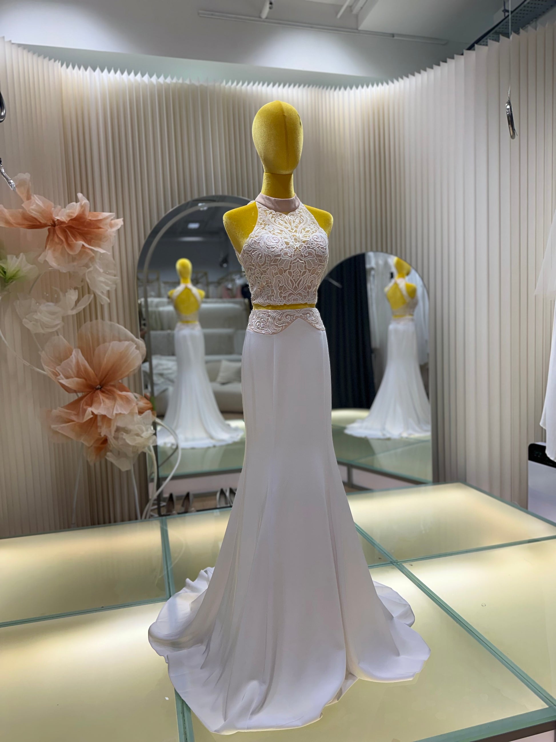 A bespoke creation from our signature collection, this gown is designed to reflect timeless elegance and personal expression. Crafted with precision and care, it features premium fabrics, refined details, and a silhouette tailored to flatter. Ideal for brides seeking sophistication with a touch of individuality, each piece is made-to-measure in our studio to ensure an unforgettable fit and finish.