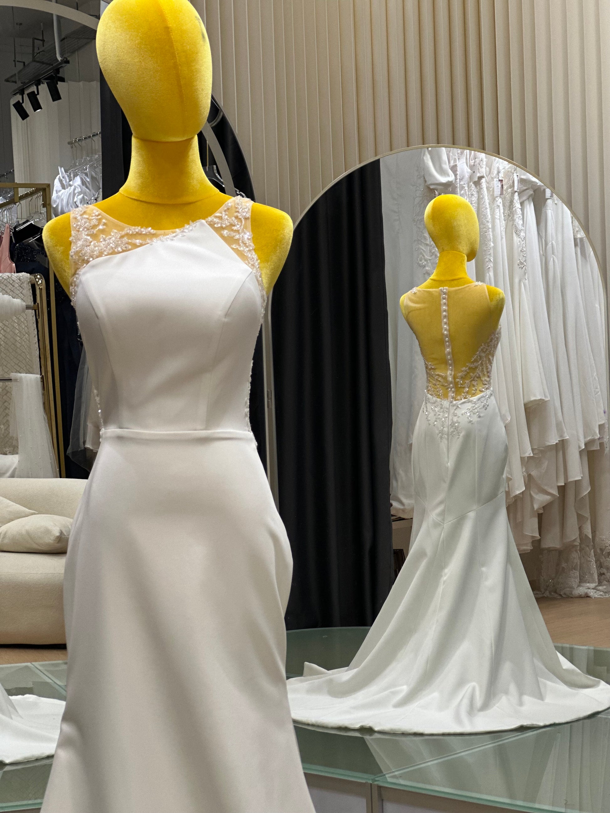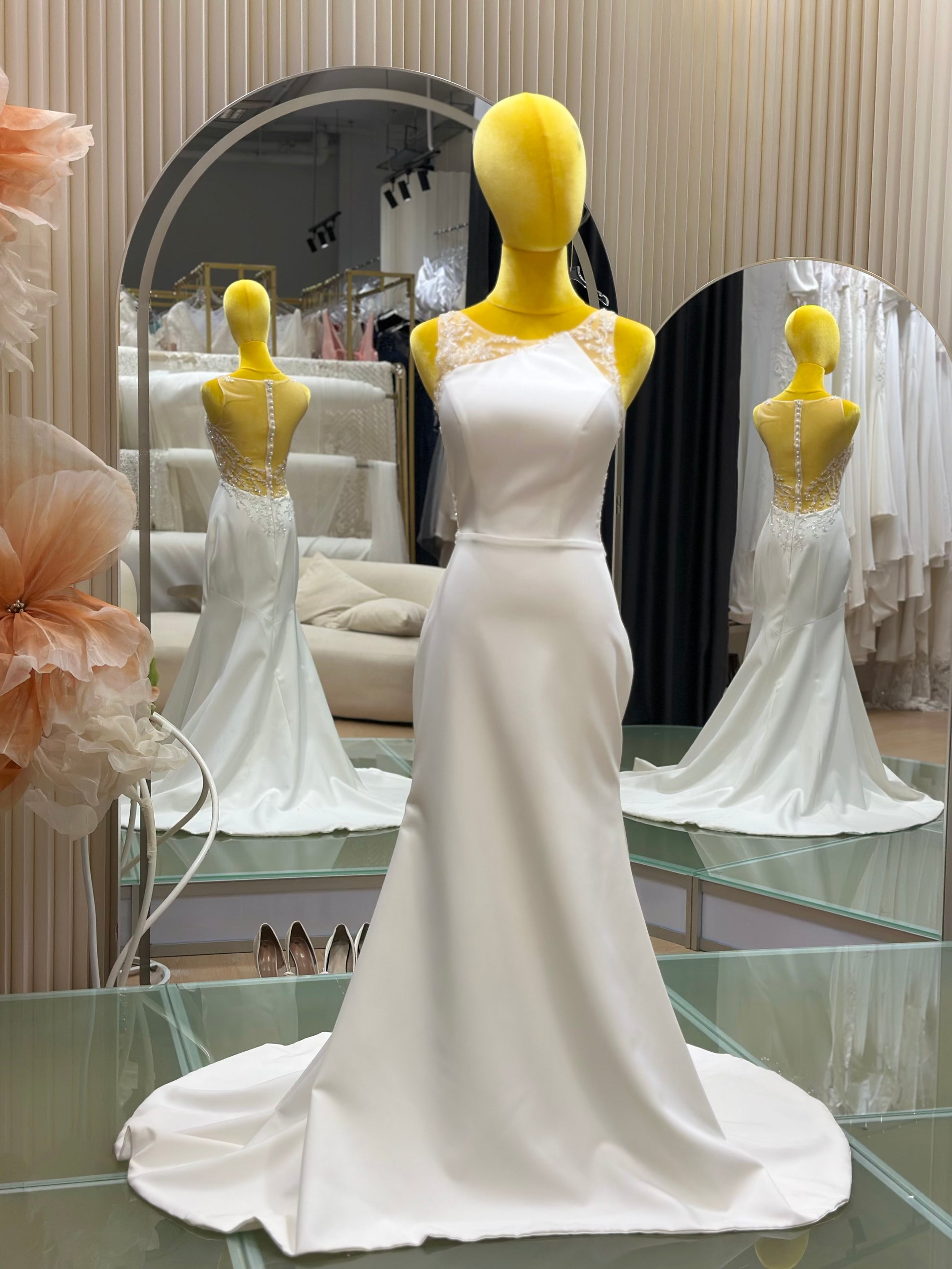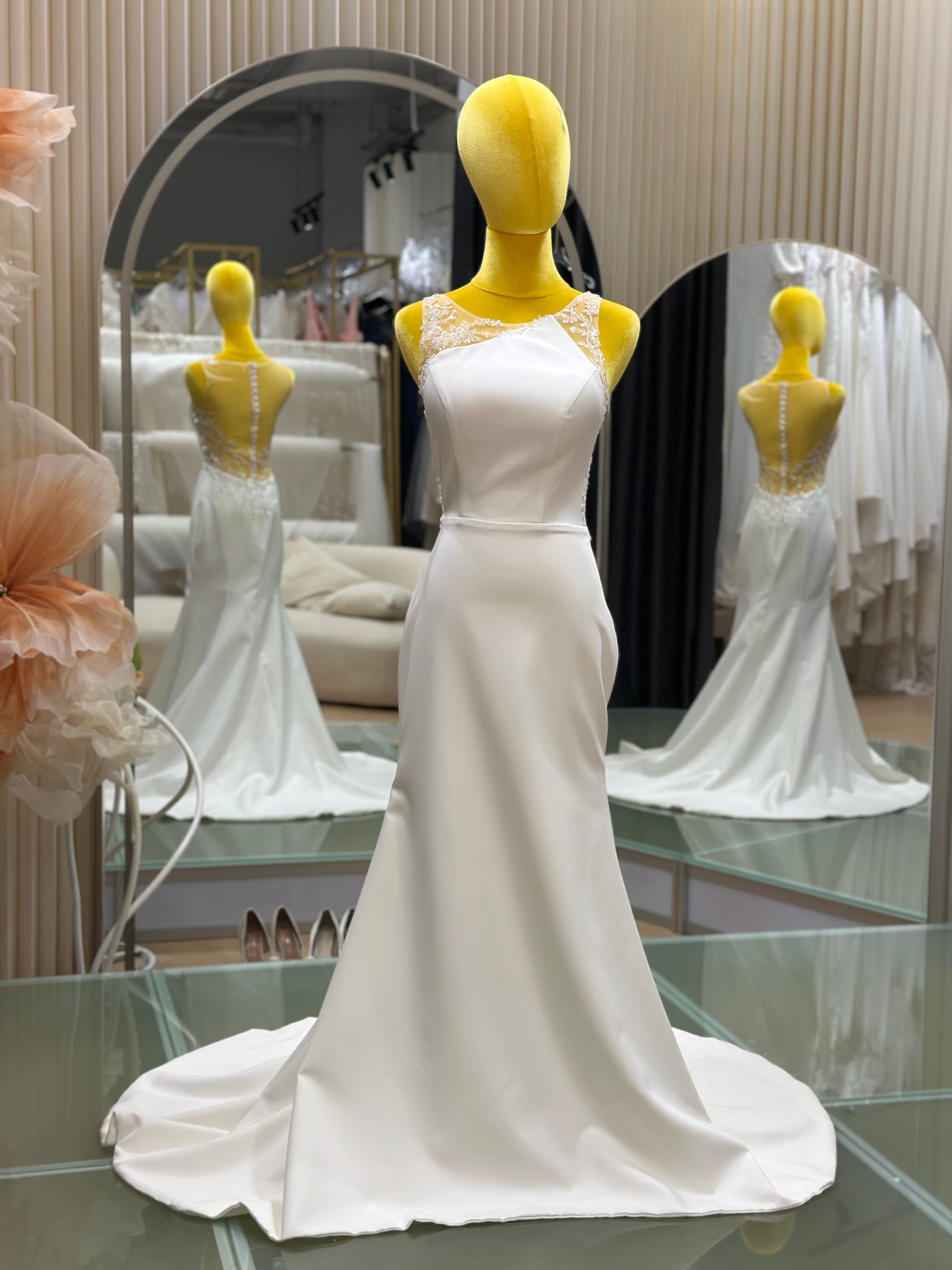 BG-WED-AME-10105 WEDDING GOWN LUX FABRIC HALF LACE SIZE S BUST 83 WAIST 66