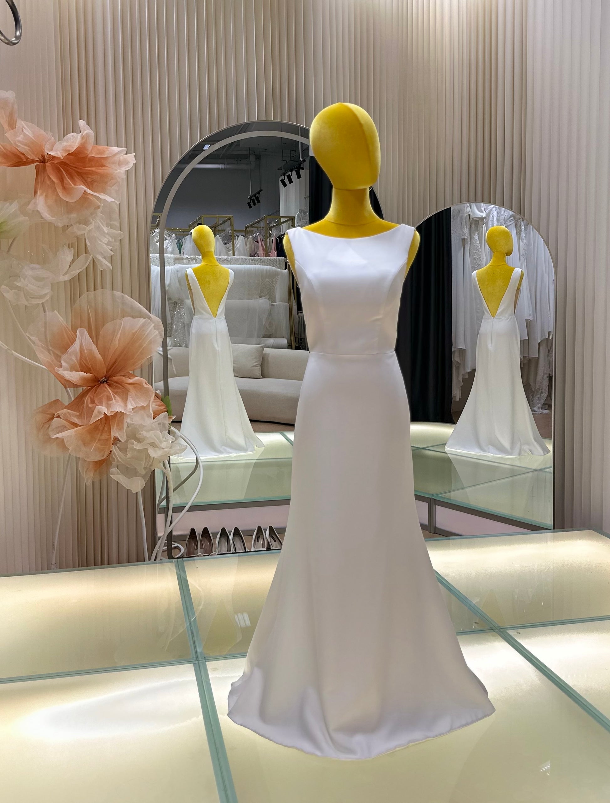 A bespoke creation from our signature collection, this gown is designed to reflect timeless elegance and personal expression. Crafted with precision and care, it features premium fabrics, refined details, and a silhouette tailored to flatter. Ideal for brides seeking sophistication with a touch of individuality, each piece is made-to-measure in our studio to ensure an unforgettable fit and finish.