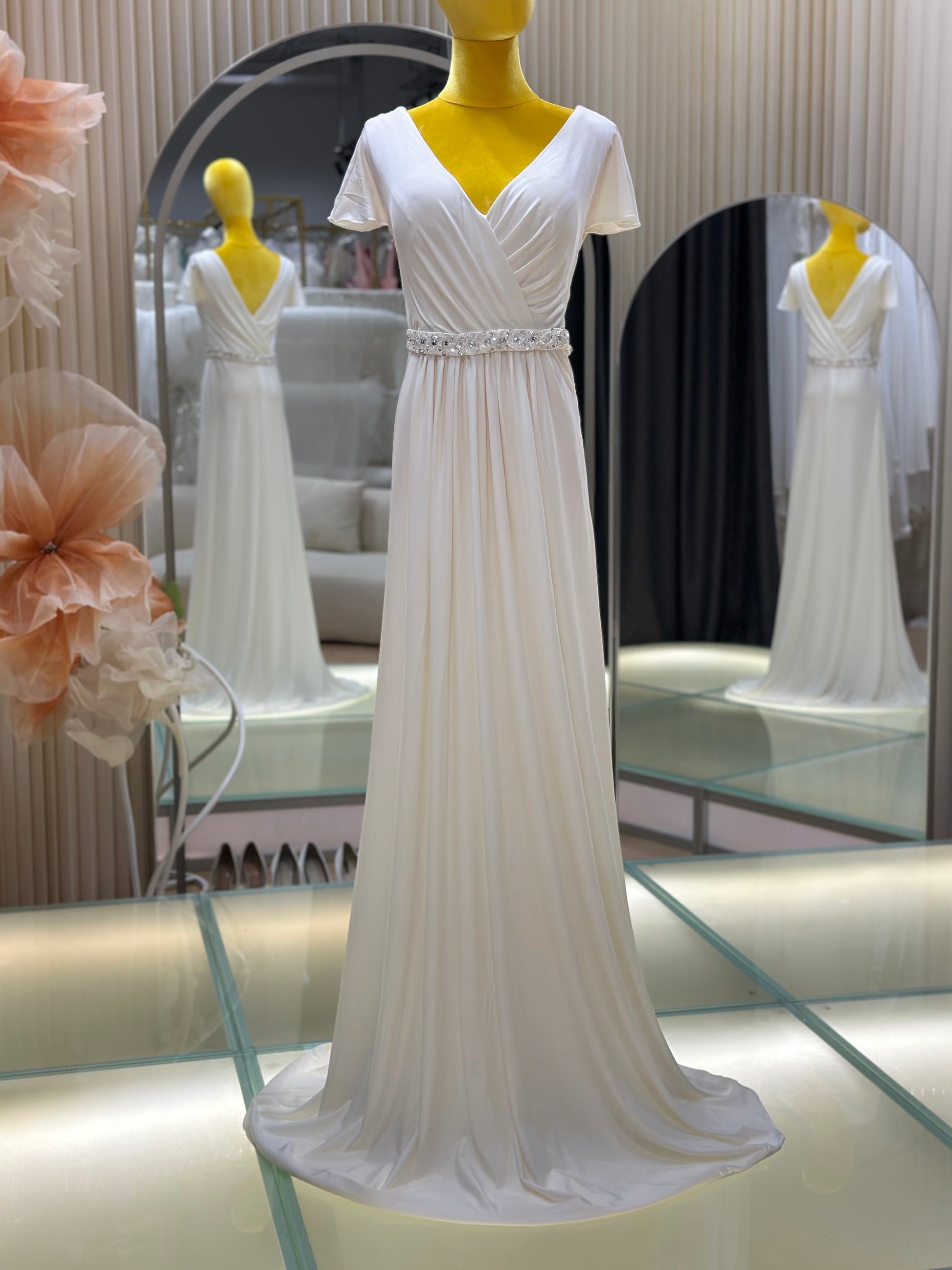 BG-WED-AME-10117 WEDDING GOWN FABRIC PLAIN WITH BEAD BELT SIZE 3XL BUST 98 WAIST 85