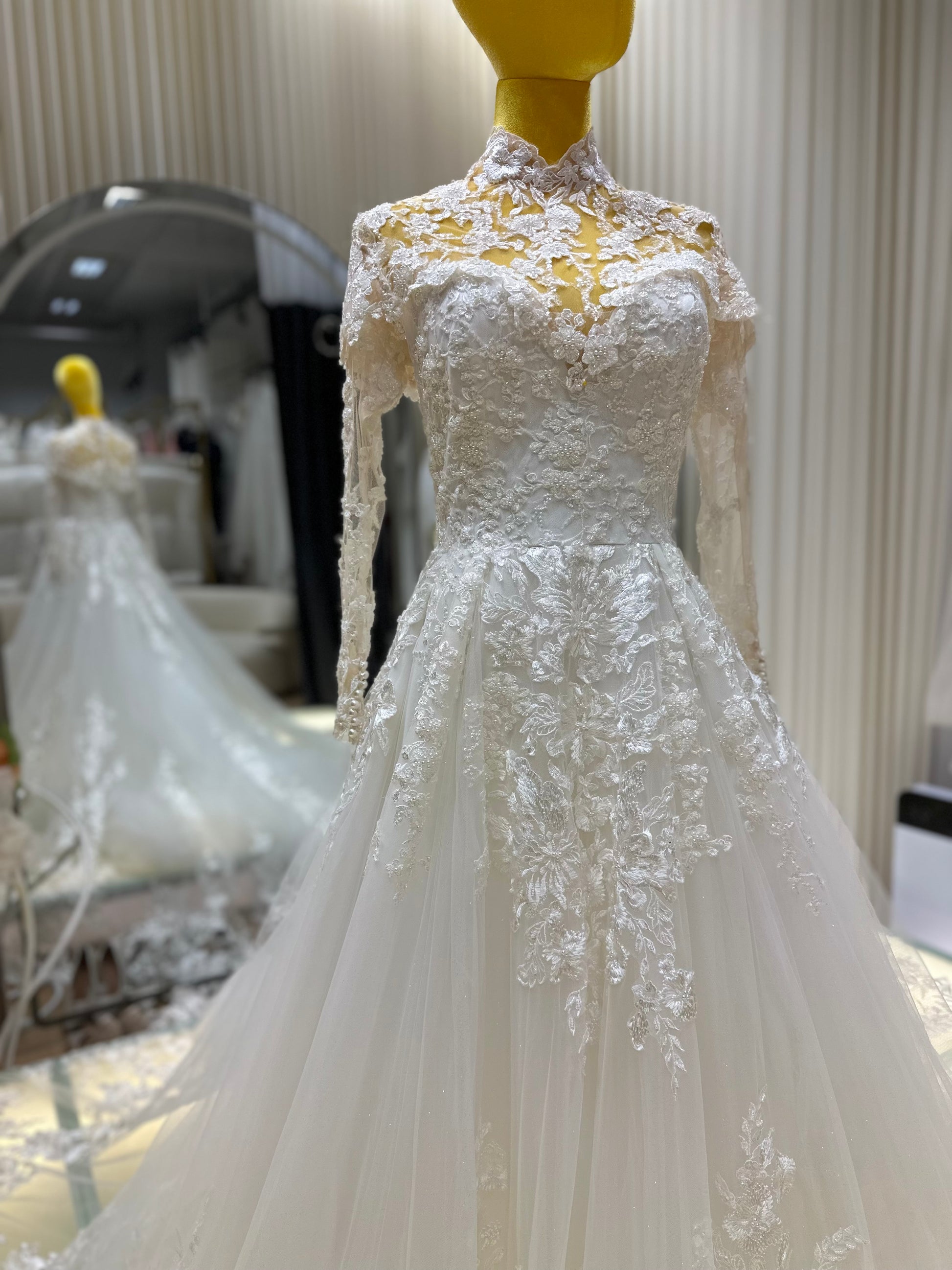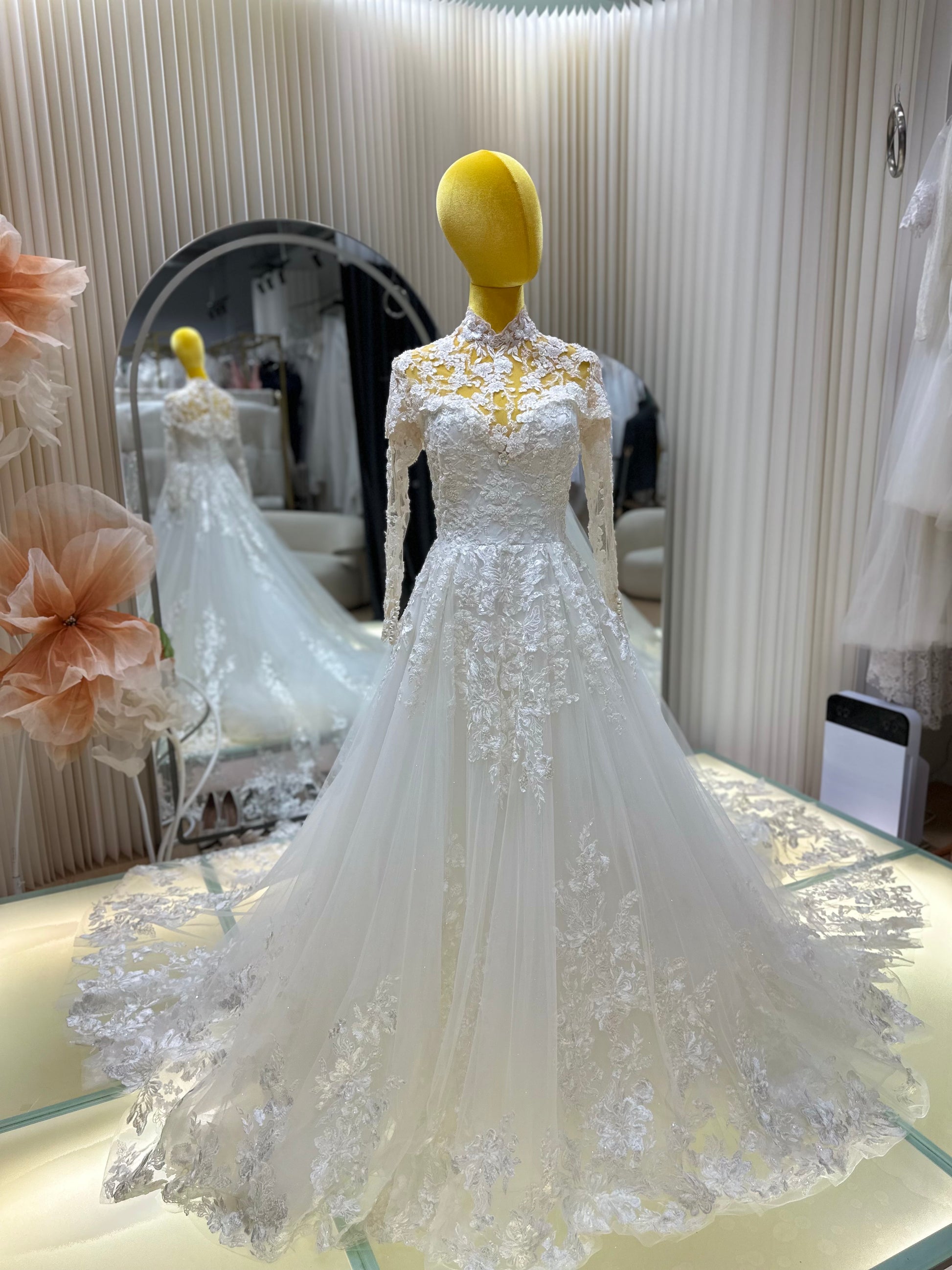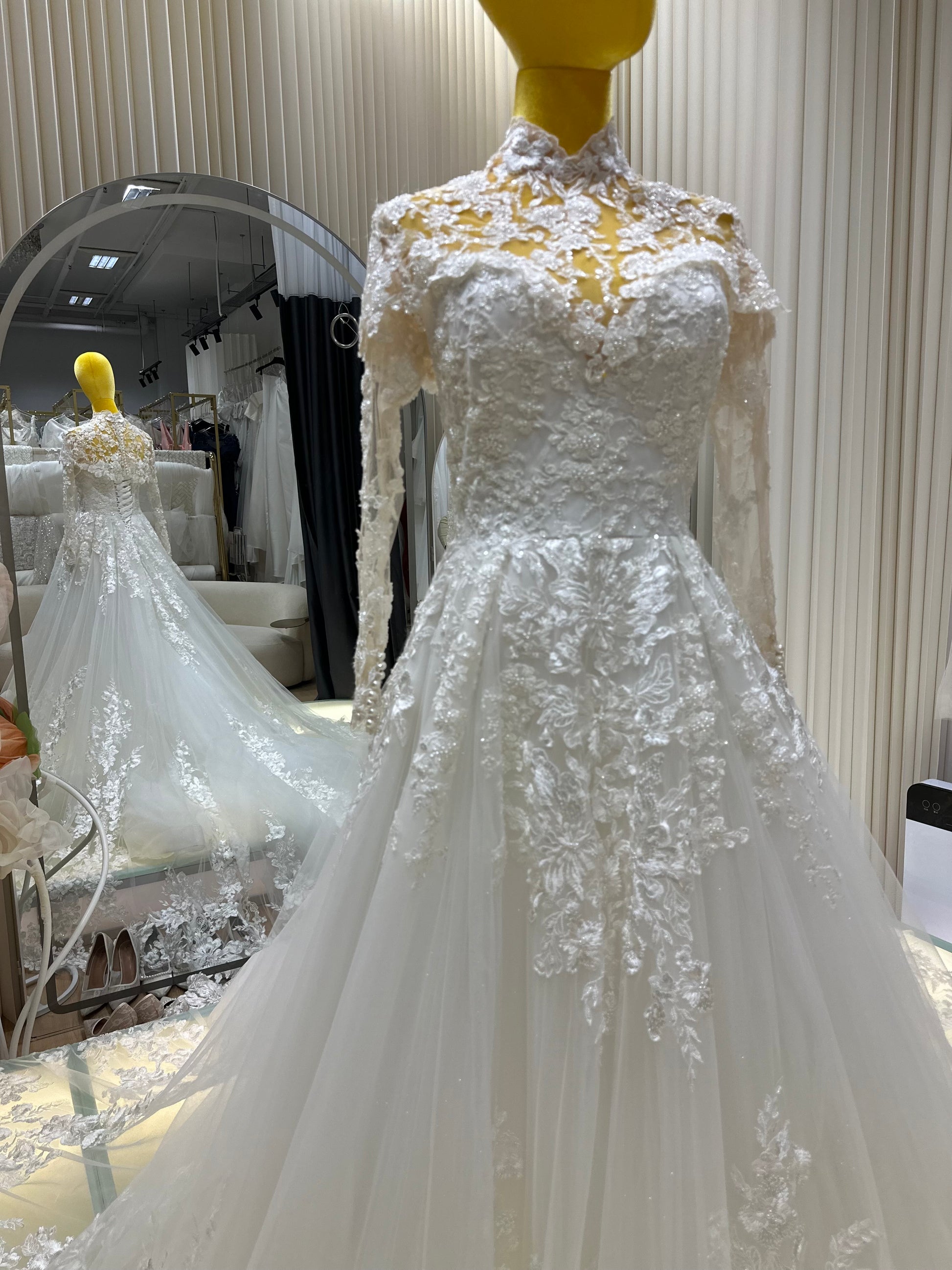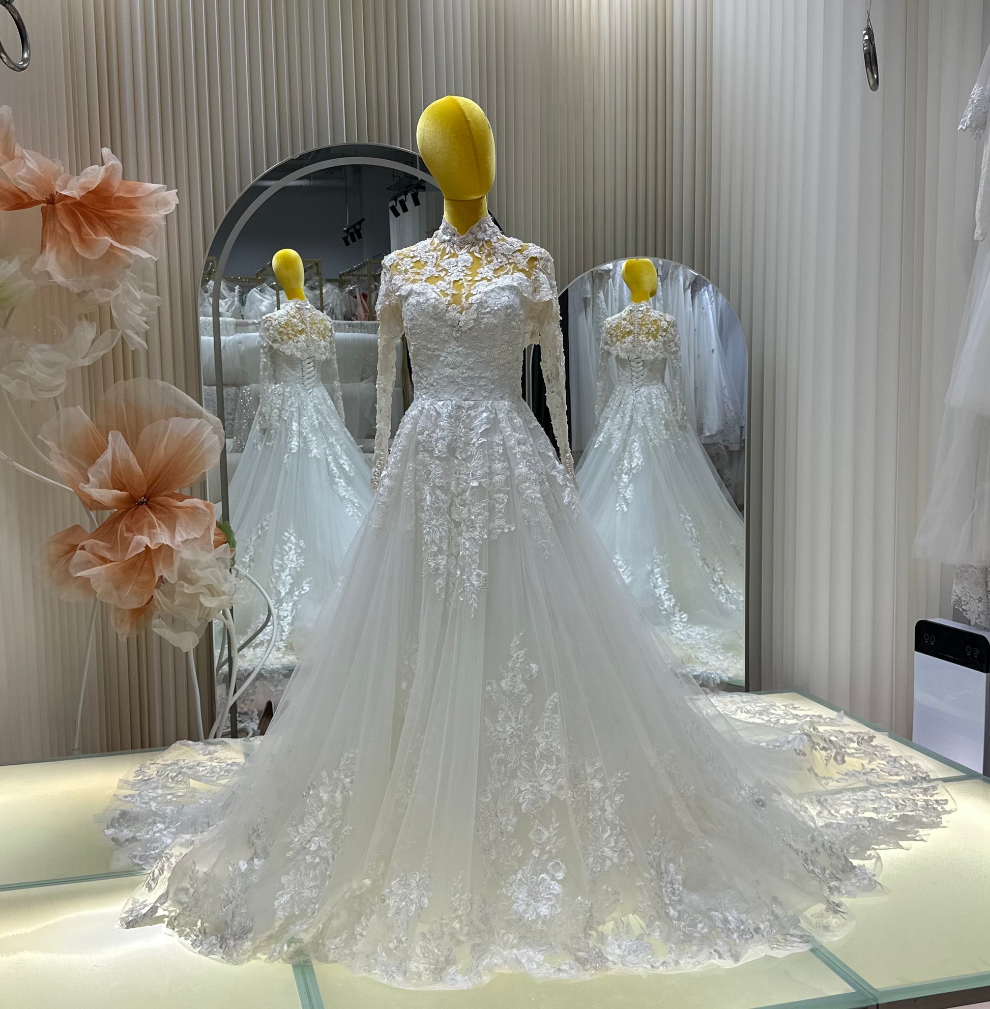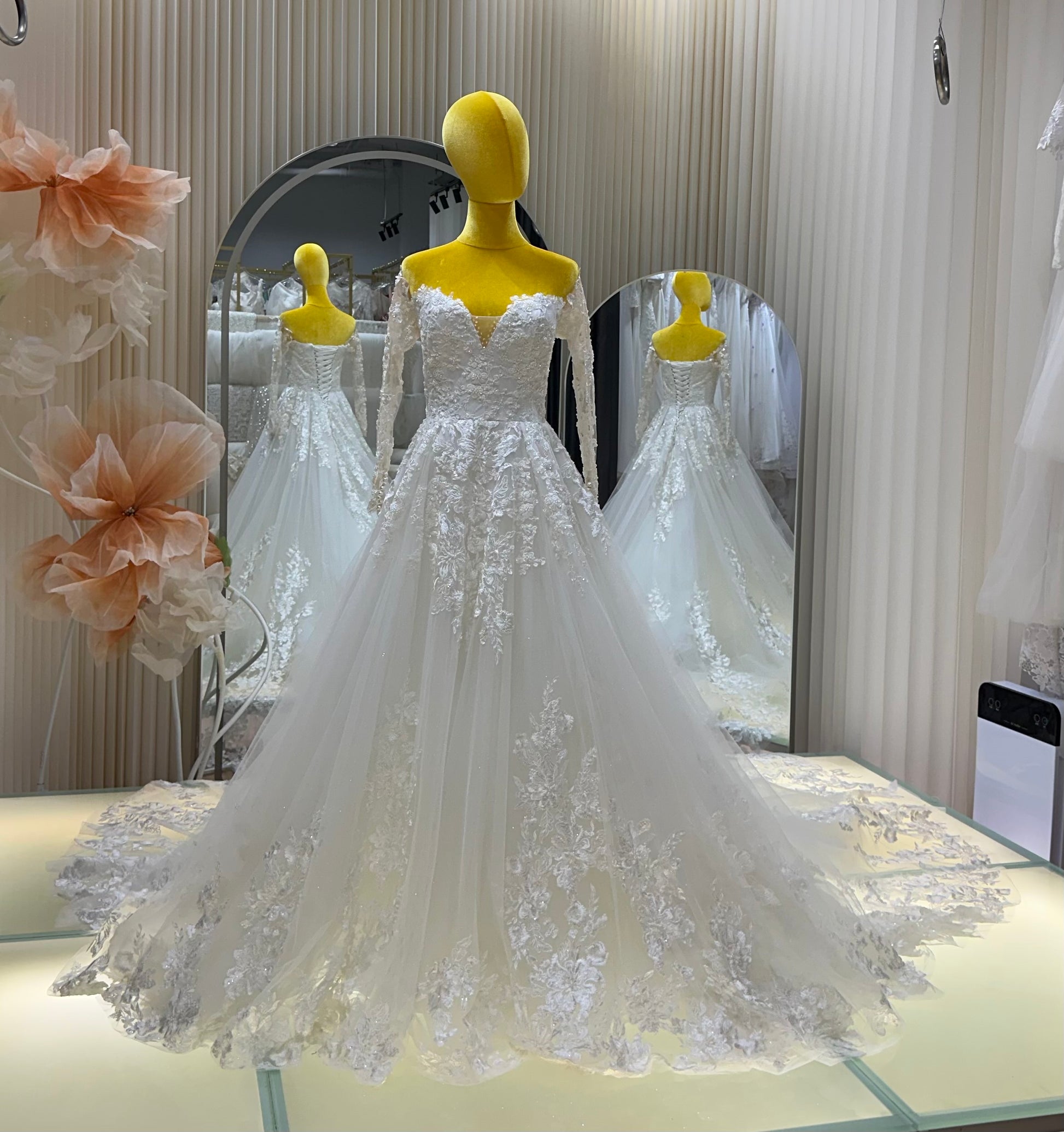 BG-WED-AME-10118 WEDDING GOWN LUX FABRIC FULL LACE SIZE XS-XL BUST 78-94 WAIST 66-76