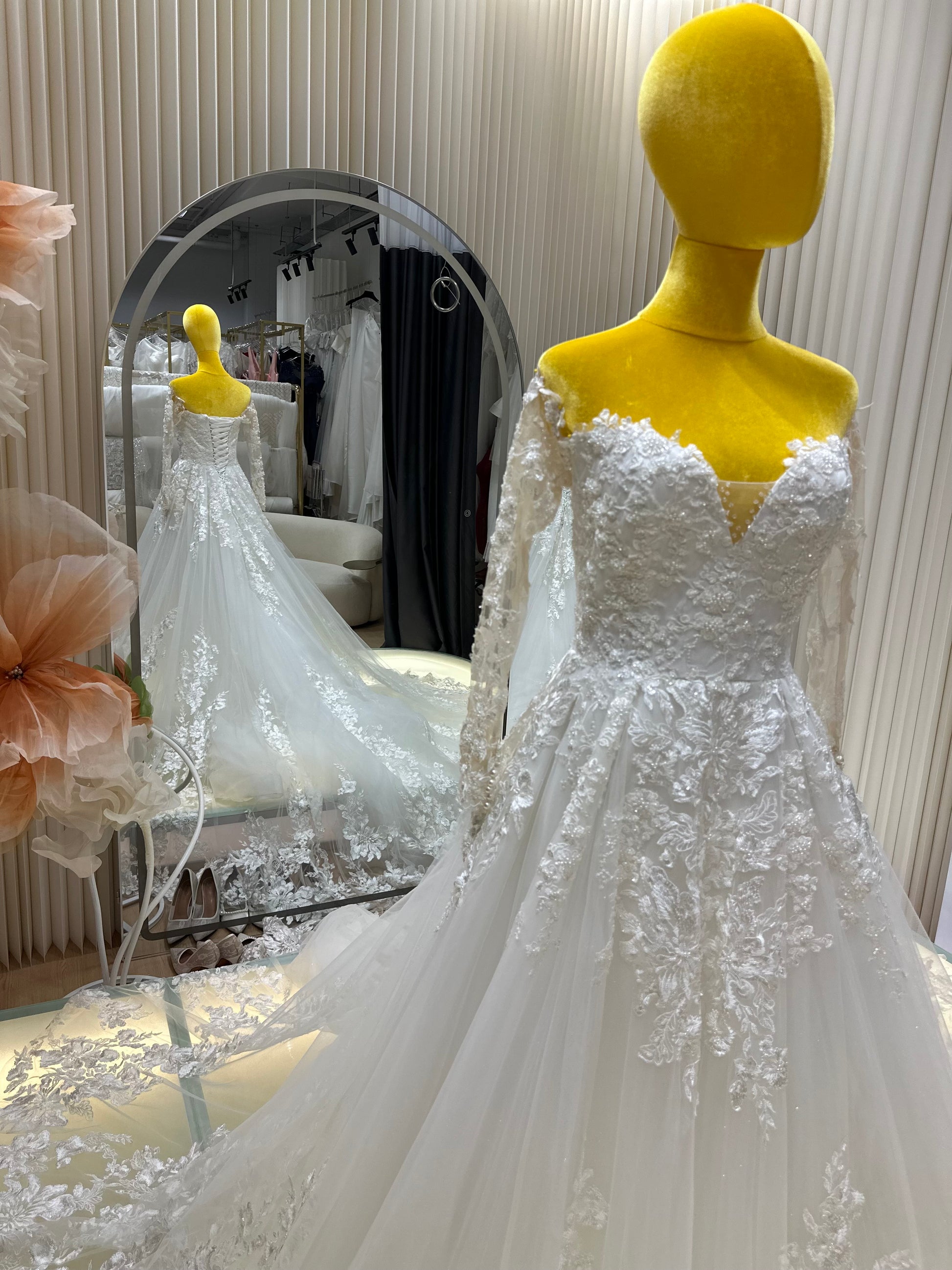 A bespoke creation from our signature collection, this gown is designed to reflect timeless elegance and personal expression. Crafted with precision and care, it features premium fabrics, refined details, and a silhouette tailored to flatter. Ideal for brides seeking sophistication with a touch of individuality, each piece is made-to-measure in our studio to ensure an unforgettable fit and finish.