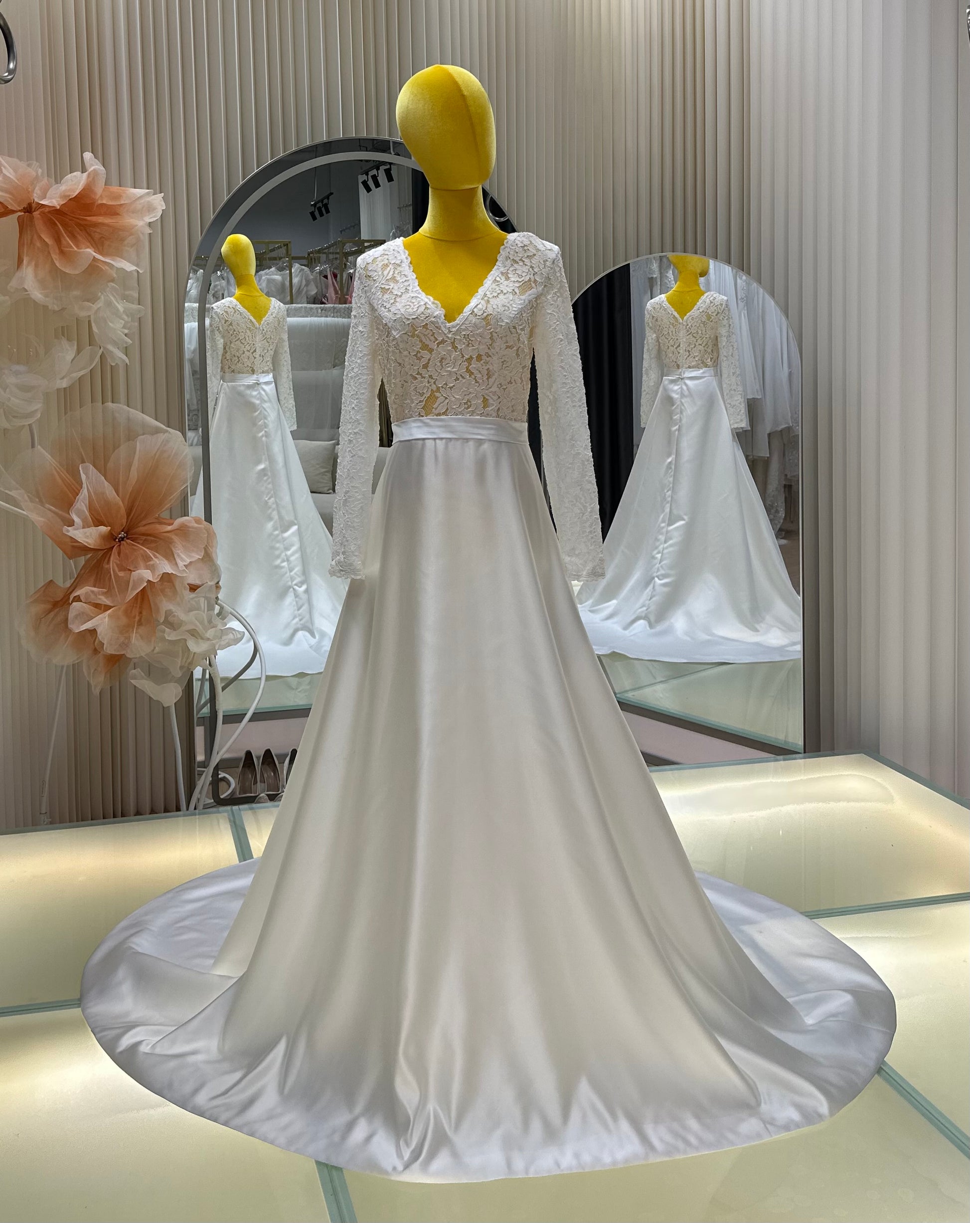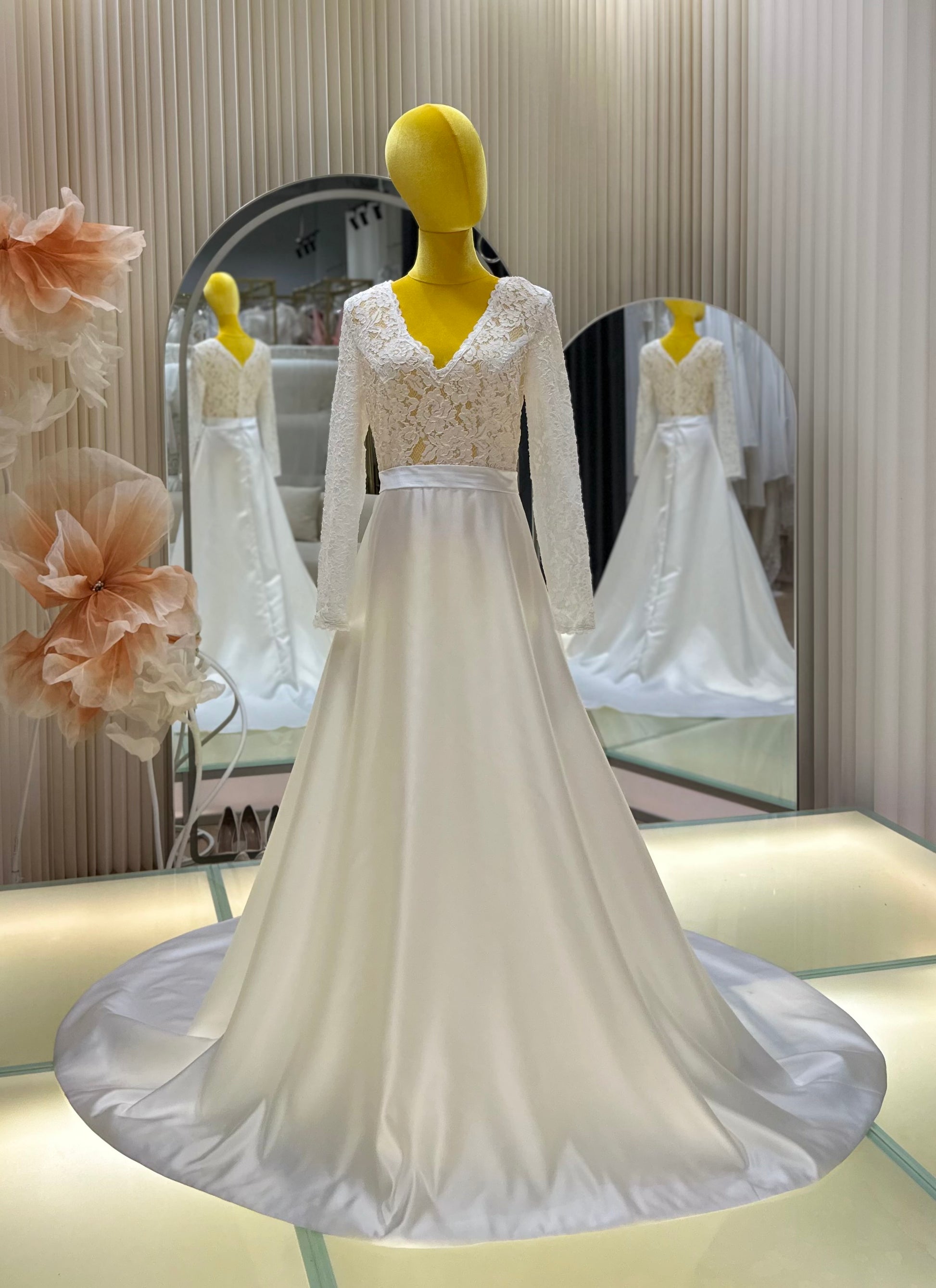 BG-WED-AME-10121 WEDDING GOWN FABRIC HALF LACE SIZE XL BUST 96 WAIST 75