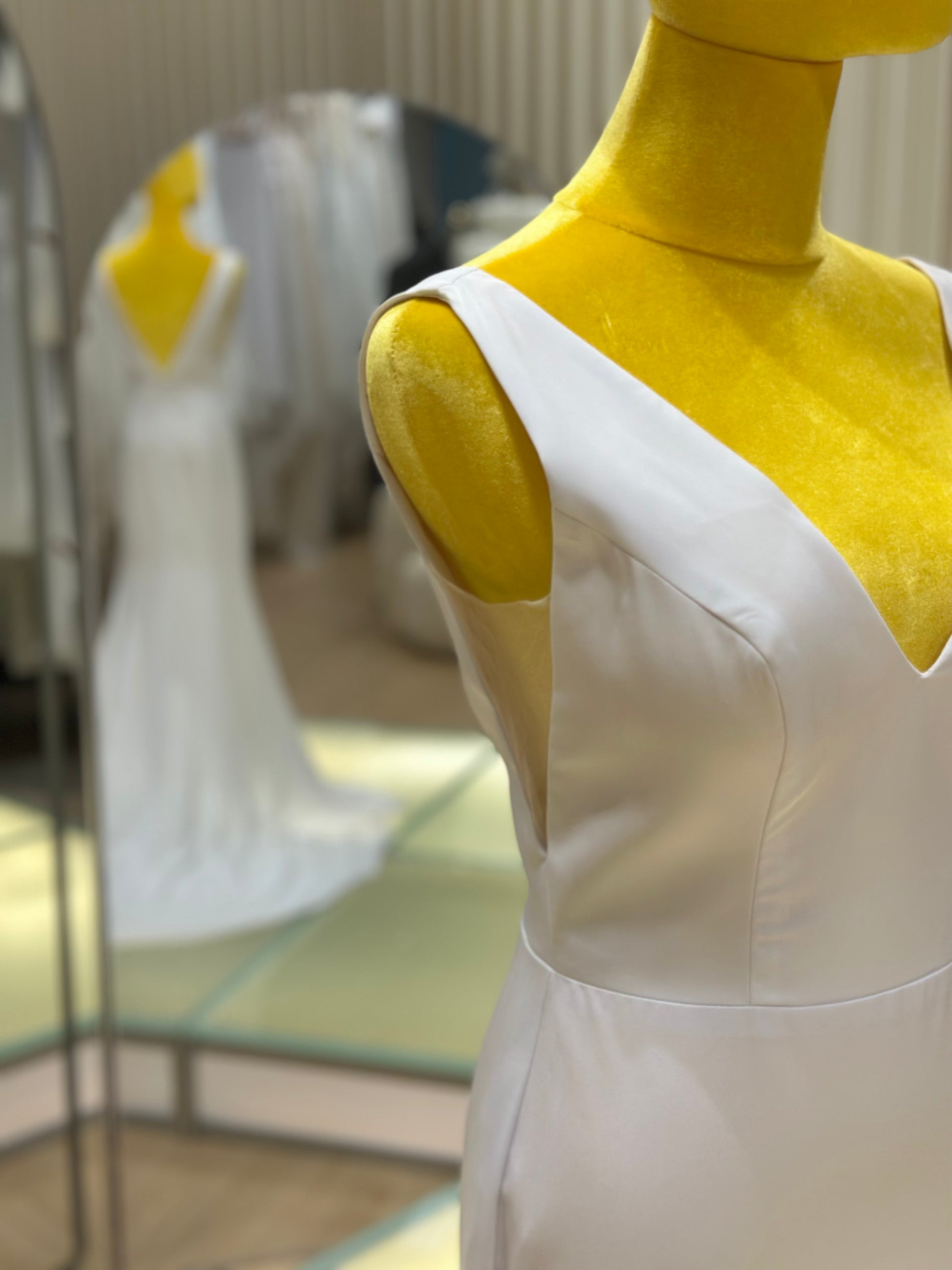 A bespoke creation from our signature collection, this gown is designed to reflect timeless elegance and personal expression. Crafted with precision and care, it features premium fabrics, refined details, and a silhouette tailored to flatter. Ideal for brides seeking sophistication with a touch of individuality, each piece is made-to-measure in our studio to ensure an unforgettable fit and finish.
