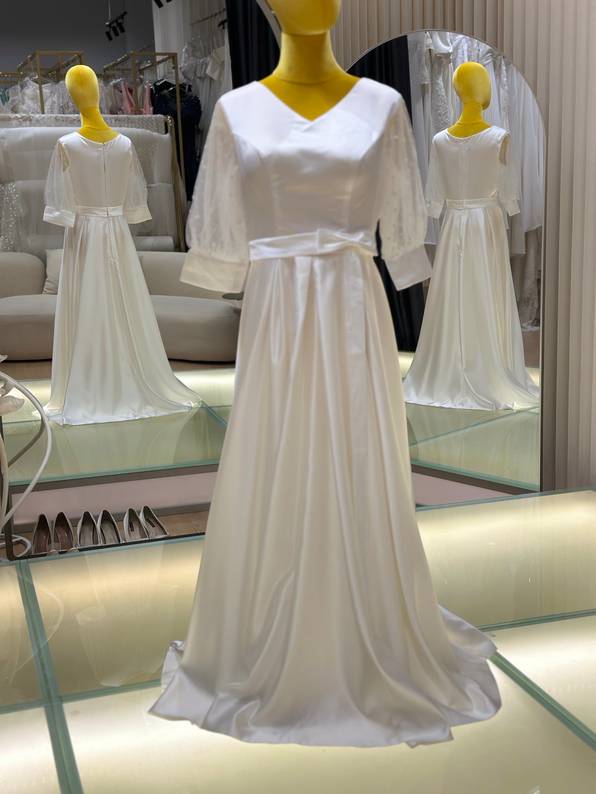BG-WED-AME-10127 WEDDING GOWN FABRIC PLAIN WITH PLEATED SIZE XXL BUST 96 WAIST 78