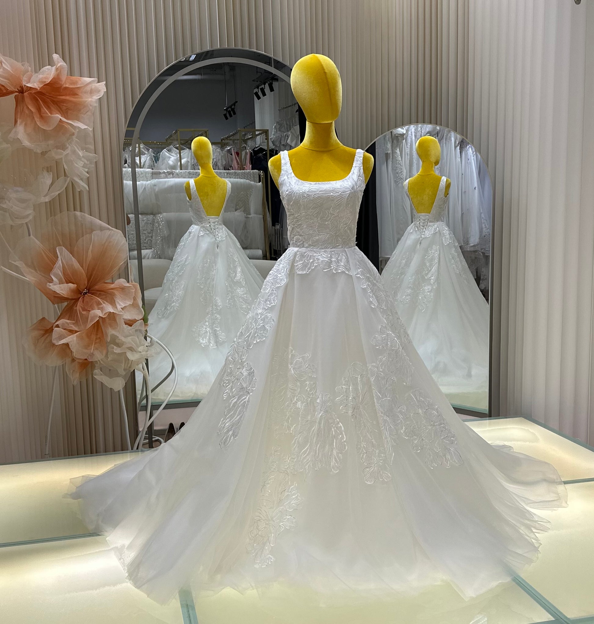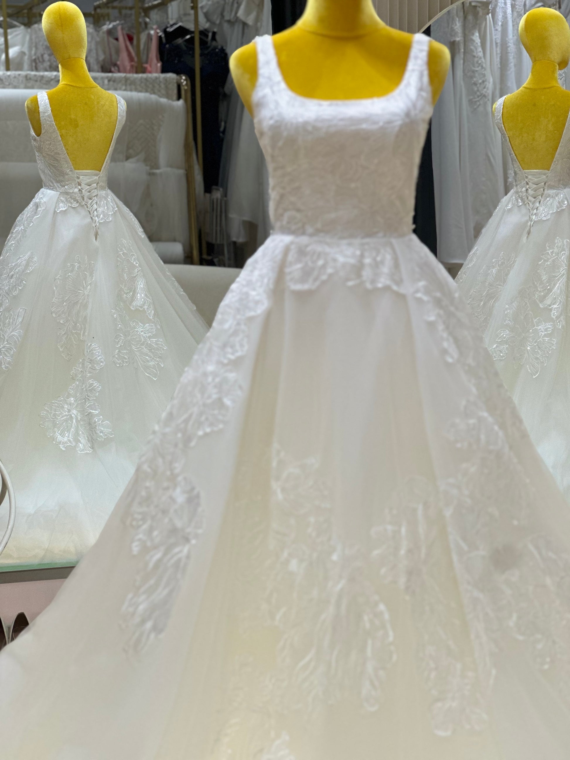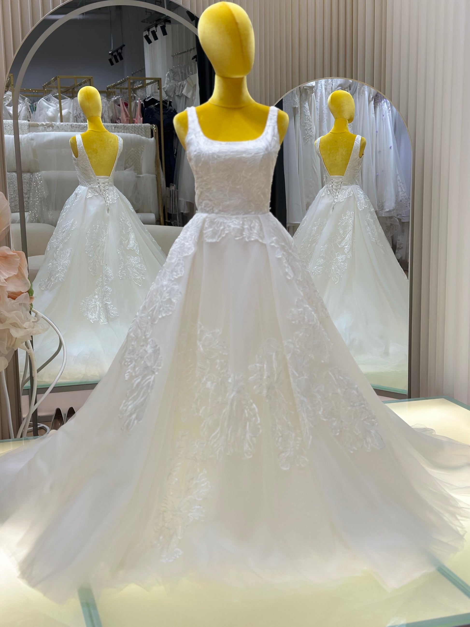 A bespoke creation from our signature collection, this gown is designed to reflect timeless elegance and personal expression. Crafted with precision and care, it features premium fabrics, refined details, and a silhouette tailored to flatter. Ideal for brides seeking sophistication with a touch of individuality, each piece is made-to-measure in our studio to ensure an unforgettable fit and finish.