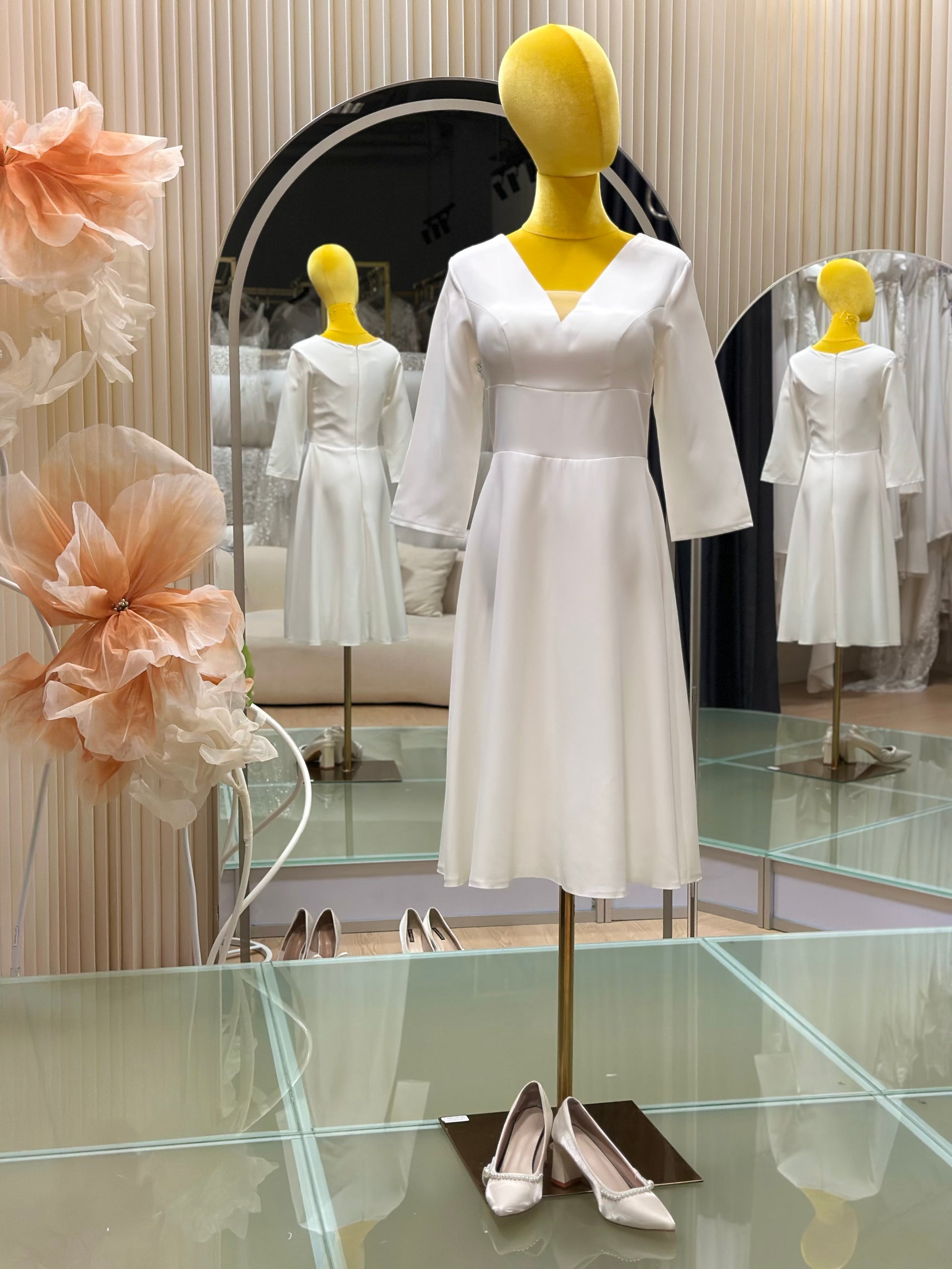 BG-WED-AME-10132 WEDDING GOWN FABRIC SHORT PLAIN WITH PLEATED SIZE L BUST 89 WAIST 71