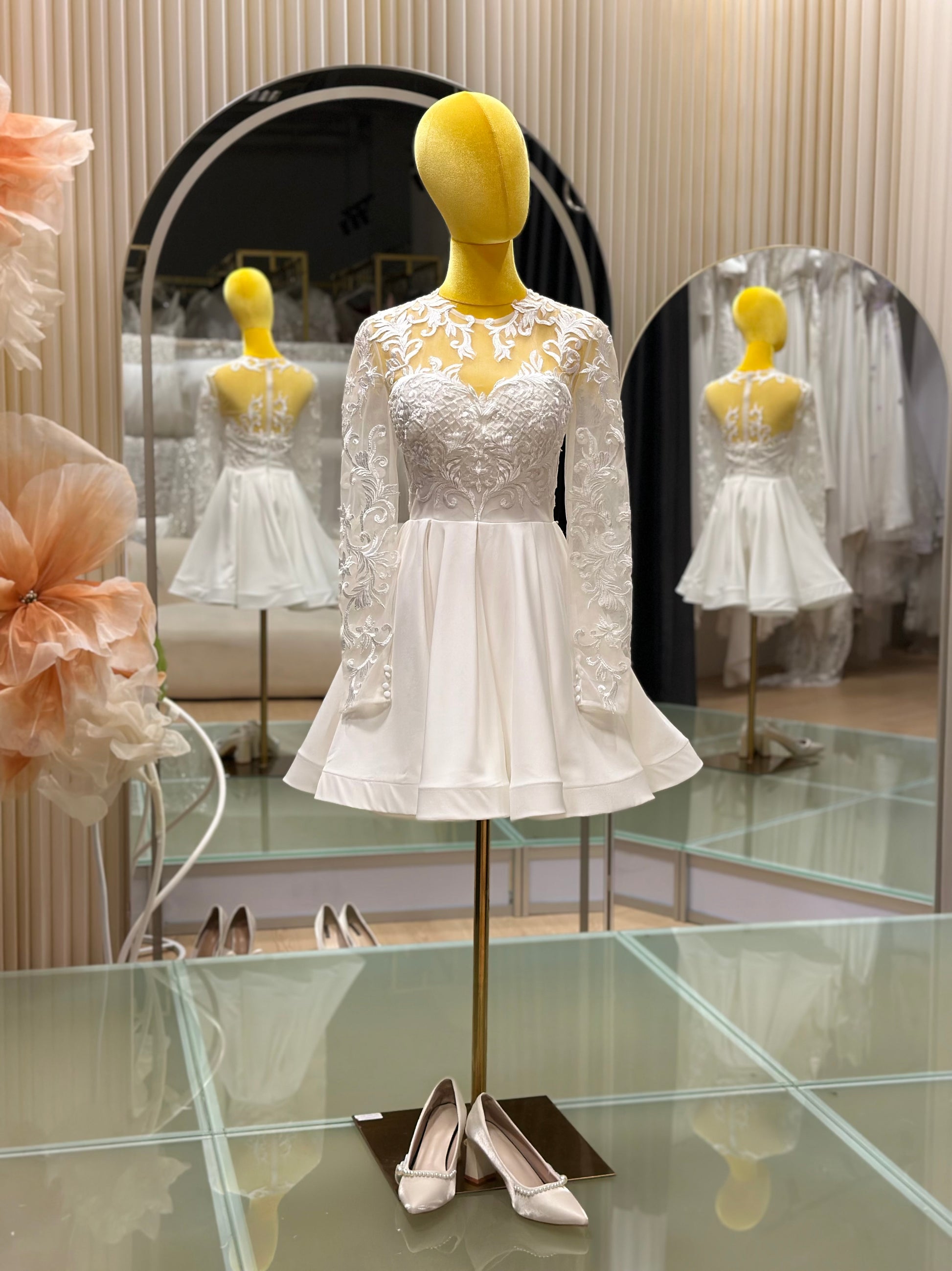 BG-WED-AME-10133 WEDDING GOWN LUX FABRIC HALF LACE WITH BEADED SIZE S BUST 80 WAIST 67