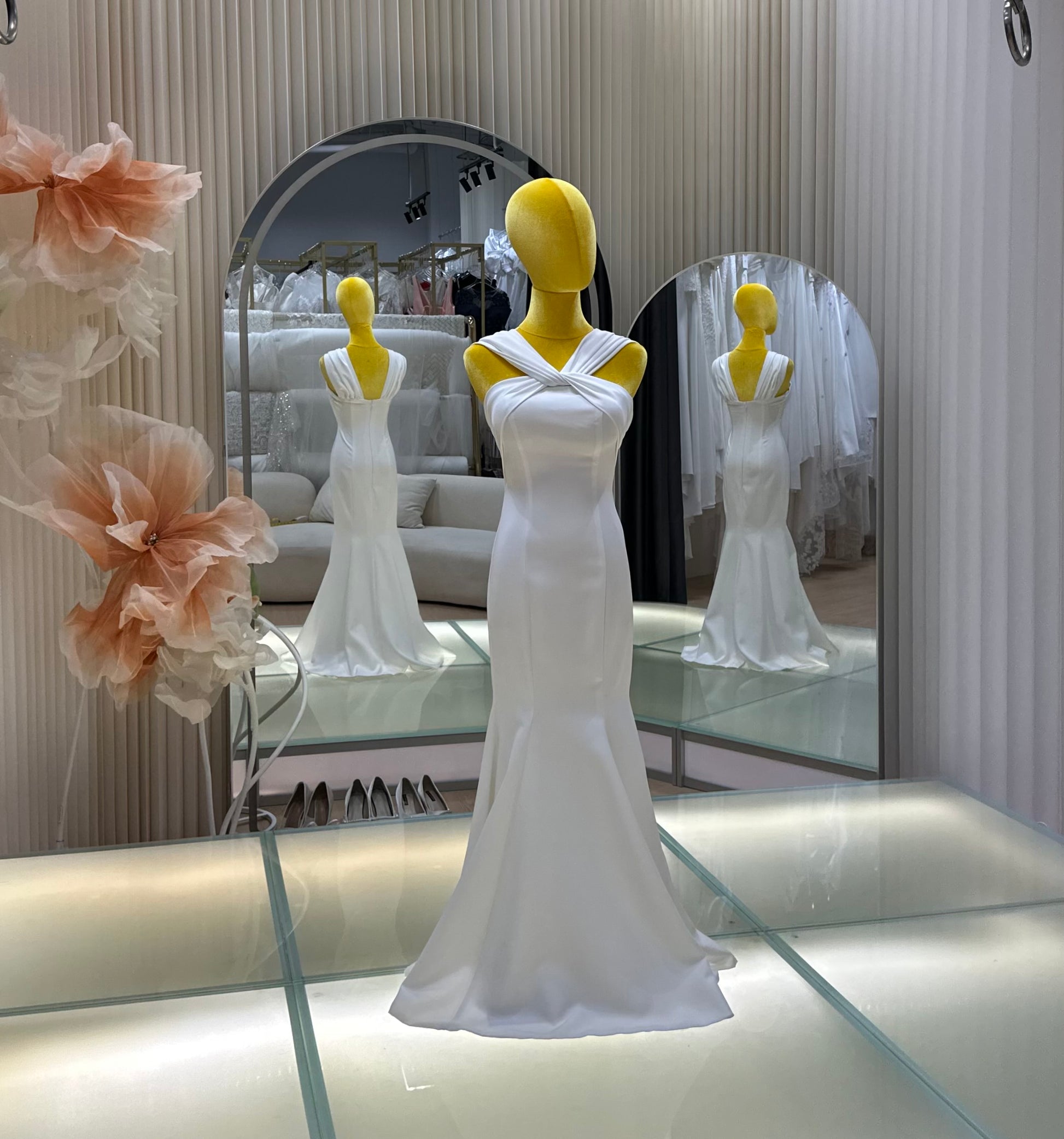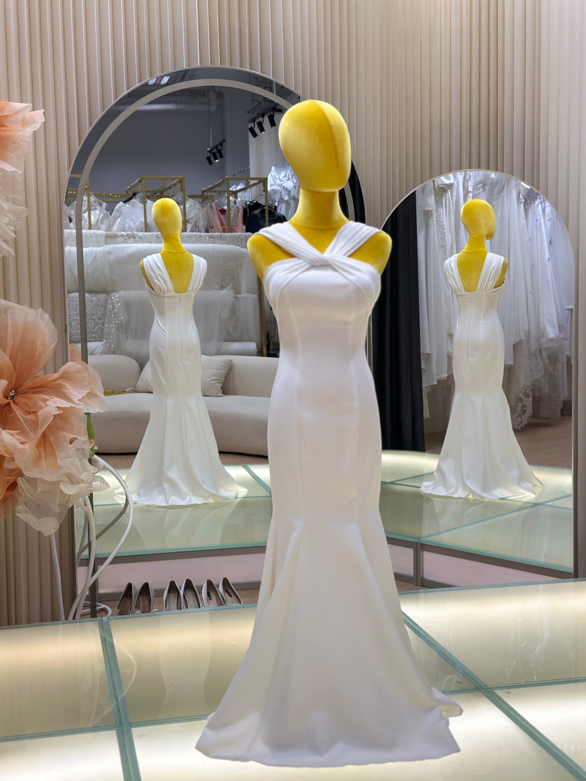 A bespoke creation from our signature collection, this gown is designed to reflect timeless elegance and personal expression. Crafted with precision and care, it features premium fabrics, refined details, and a silhouette tailored to flatter. Ideal for brides seeking sophistication with a touch of individuality, each piece is made-to-measure in our studio to ensure an unforgettable fit and finish.