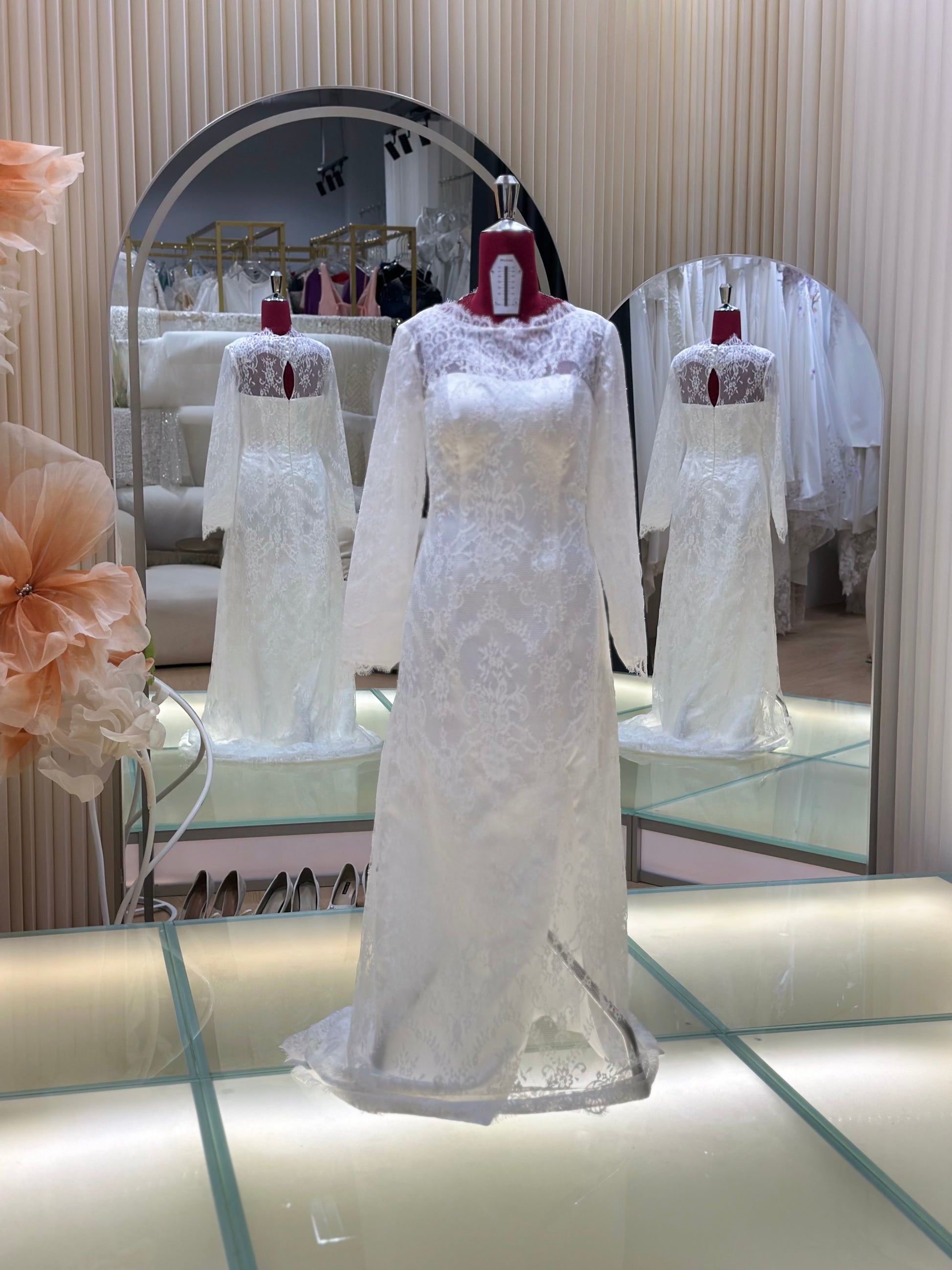 BG-WED-AME-10144 WEDDING GOWN FABRIC FULL LACE SIZE XXL BUST 95 WAIST 78