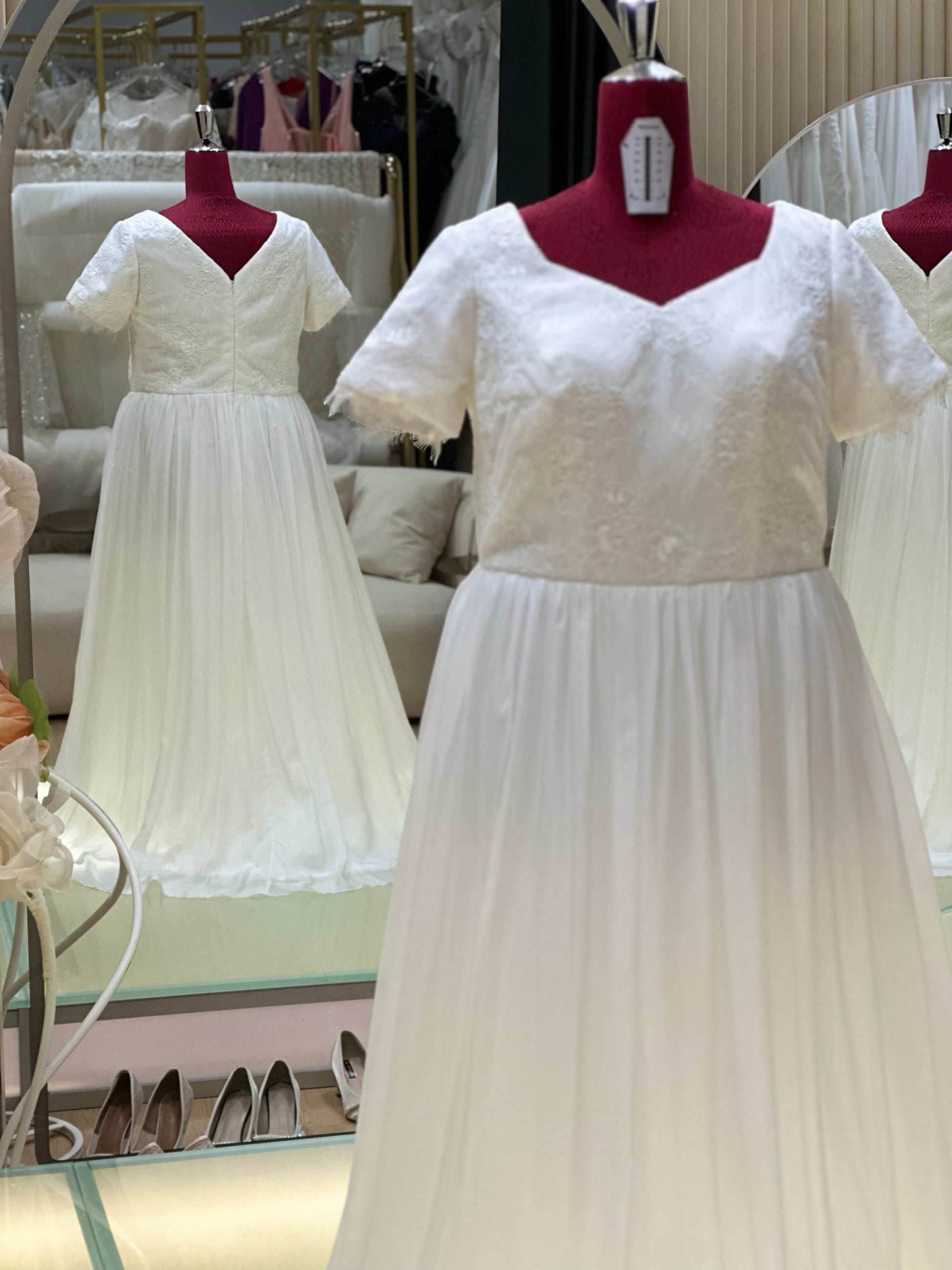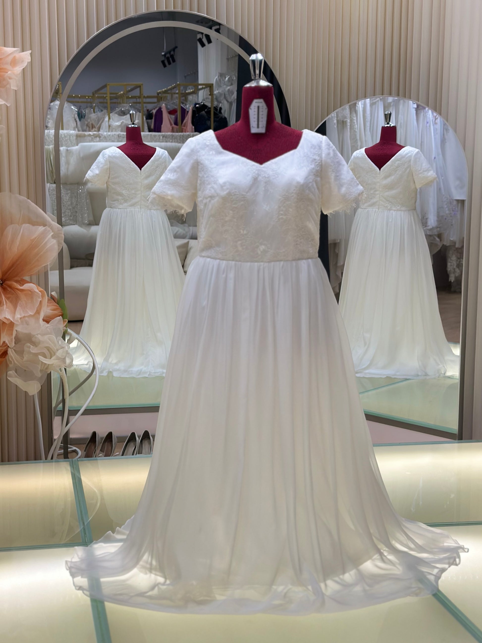 A bespoke creation from our signature collection, this gown is designed to reflect timeless elegance and personal expression. Crafted with precision and care, it features premium fabrics, refined details, and a silhouette tailored to flatter. Ideal for brides seeking sophistication with a touch of individuality, each piece is made-to-measure in our studio to ensure an unforgettable fit and finish.