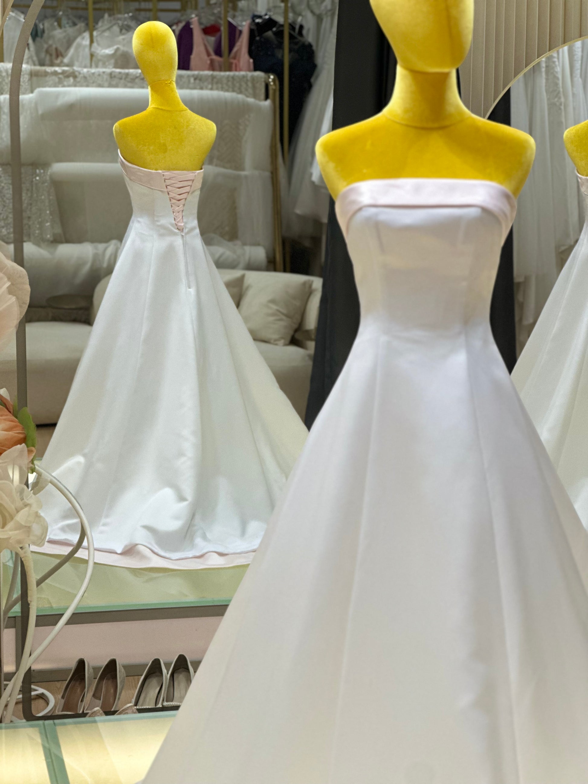 BG-WED-AME-10152 WEDDING GOWN PREMIUM FABRIC PLAIN WITH PLEATED PINK SIZE M BUST 85 WAIST 69