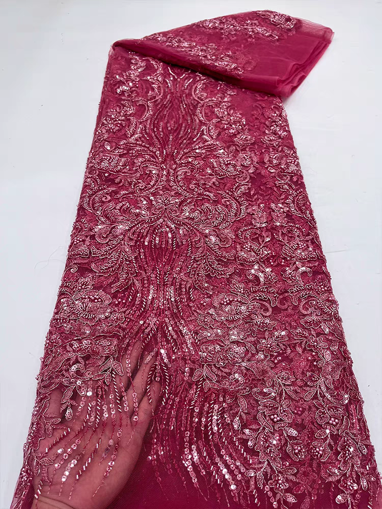 Burgundy beaded tube embroidery mesh ethnic silver strands flower lace sequin embroidery fabric dress clothing fabric 5y