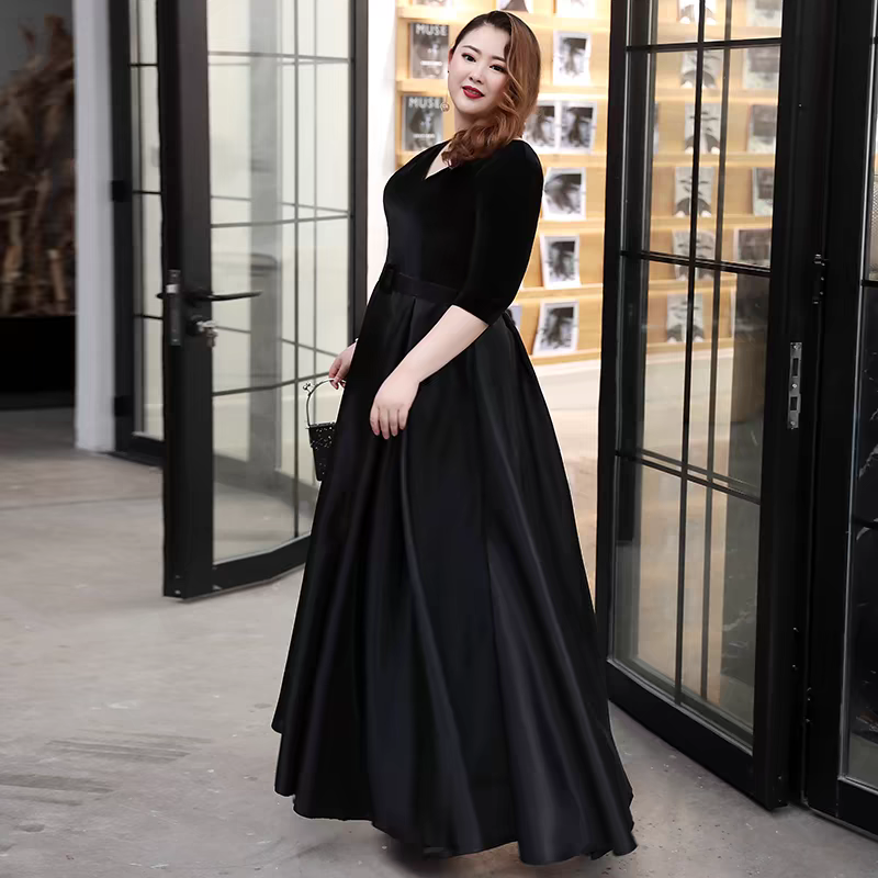 EG-SALE-AME-00104 Satin and velvet toast dress new style elegant simple and generous annual meeting long evening dress