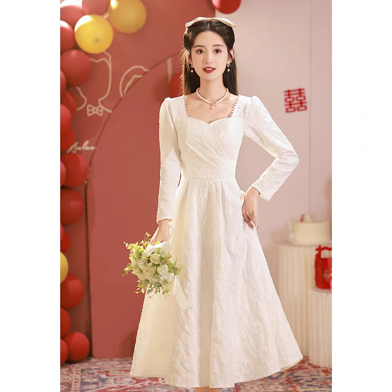 BG-WED-AME-10072 White evening dress for women, small, high-end, niche, luxury banquet, can be worn for registration, engagement dress