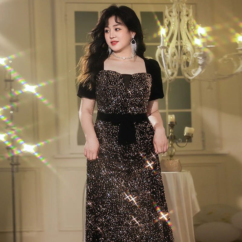 This elegant evening dress is perfect for any occasion, with its high-quality polyester material and stylish A-line design. The dress features a square neckline, short sleeves, and a long skirt that falls elegantly to the floor. With its vibrant color and beaded details, this dress is sure to turn heads. Whether you're attending a wedding, a formal gala, or just want to feel like a princess, this dress is a great choice. The dress is available in various sizes, including 3XL, 4XL, 5XL, and 6XL, making it accessible to women of all shapes and sizes. The dress is also available in different colors, making it easy to find the perfect one to match your personal style.