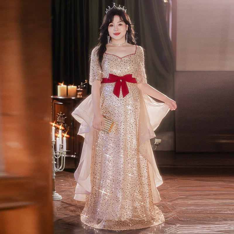 This elegant evening dress is perfect for any occasion, with its high-quality polyester material and beautiful beaded details. The A-line skirt and square neckline create a flattering silhouette, while the long sleeves add a touch of sophistication. The dress is available in various sizes, including 3XL, 4XL, 5XL, and 6XL, making it suitable for women of all shapes and sizes. The champagne color is both elegant and eye-catching, making this dress a great choice for weddings, parties, or any other formal event.
