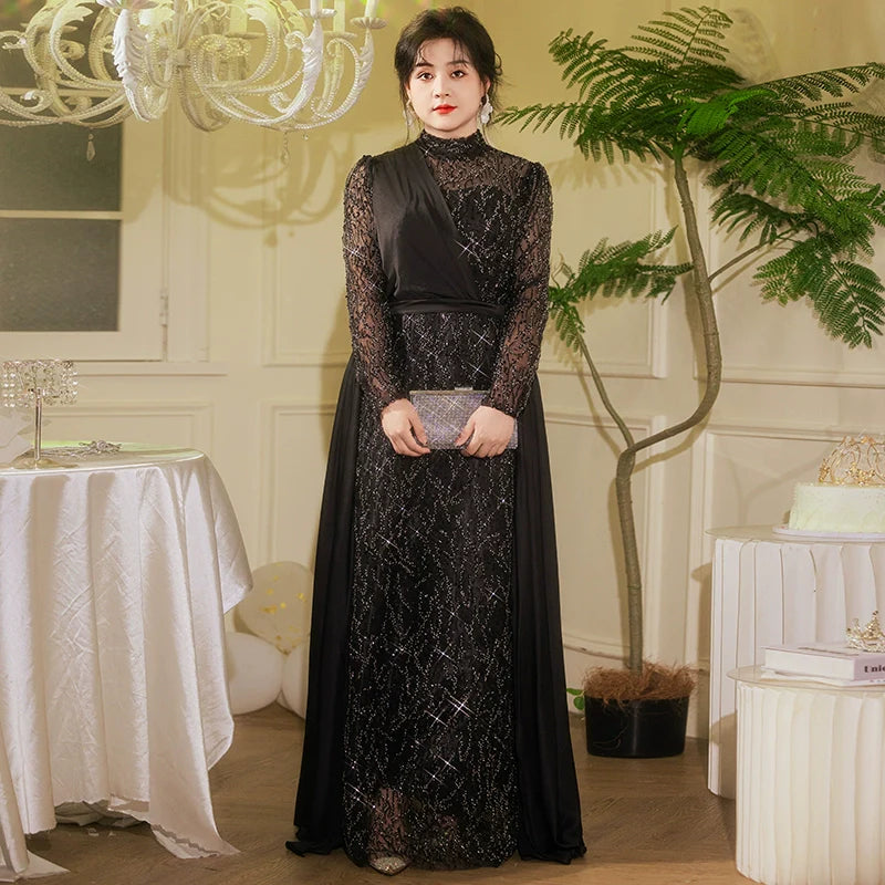 This stunning evening dress combines elegance and comfort, designed specifically for plus-size women. The high-quality polyester fabric drapes beautifully, accentuating your curves without sacrificing comfort. Featuring intricate beaded details and a classic cheongsam design, it is perfect for elegant events like weddings and banquets. Enjoy the flattering A-line cut and mid-rise waist, which add a touch of sophistication to any occasion. Available in various sizes up to 7XL, this dress caters to all beauties.