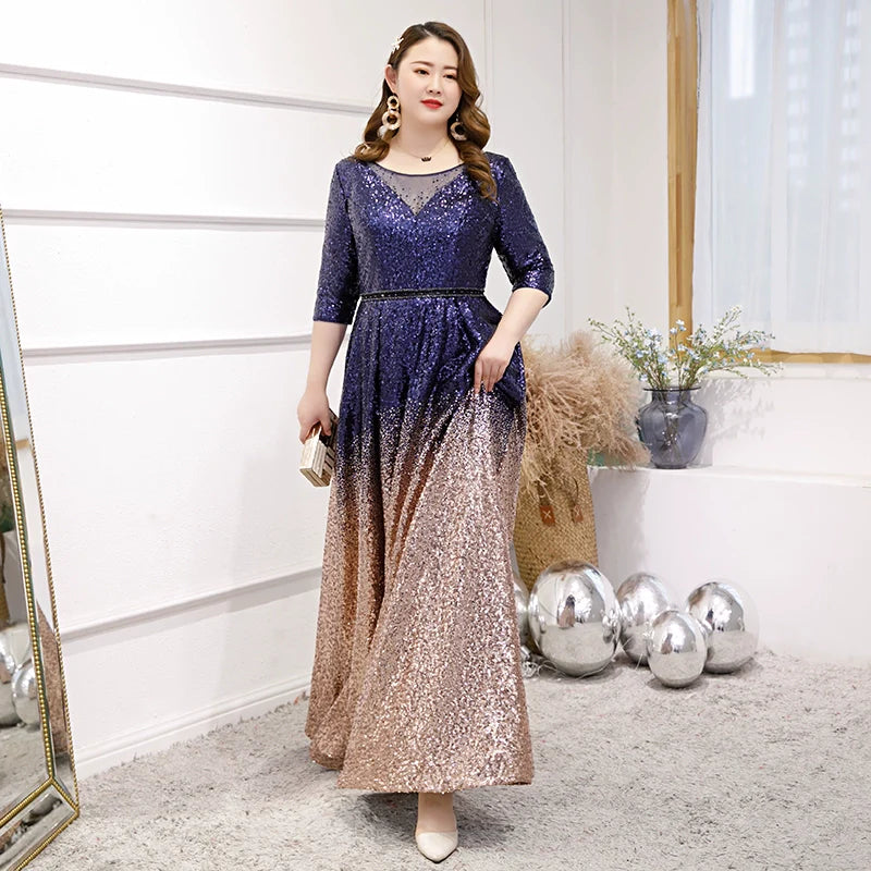 This elegant evening dress is perfect for any occasion, featuring a gradient design and fitted silhouette. The dress is made of high-quality sequinant material and is available in various sizes, including plus sizes. It's perfect for daily wear, dating, parties, weddings, and other formal events. The dress is designed to make you feel confident and beautiful, with a U-collar and mid-rise waist. The beaded details add a touch of sophistication and glamour to the overall design.