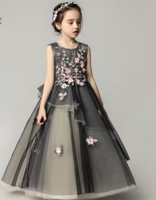 Make your little princess's dreams come true with this exquisite dress. Perfect for weddings, piano performances, and special evening events. The flowing tulle skirt and delicate appliques create a magical look. Crafted from high-quality materials, this dress ensures comfort and durability. Let your child shine in this unforgettable gown, creating memories that will last a lifetime.